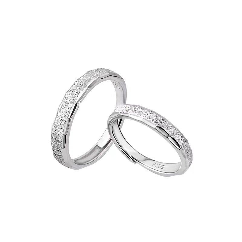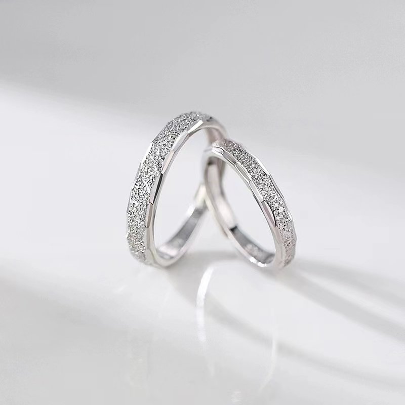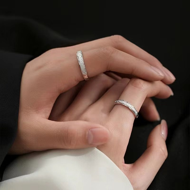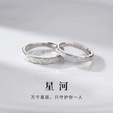 S925纯银星河情侣对戒素圈戒指小众设计异地恋自律男女开口食指戒