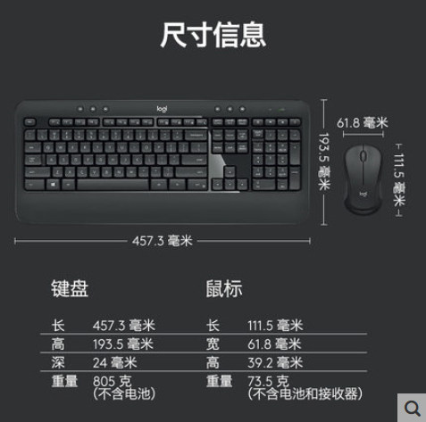 罗技MK540无线键盘鼠标键鼠套装家用办公商务游戏全尺寸键盘mk540