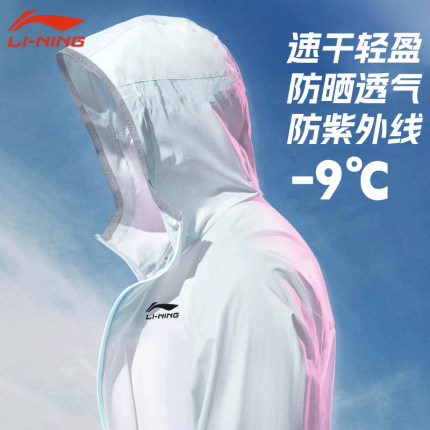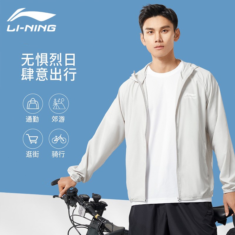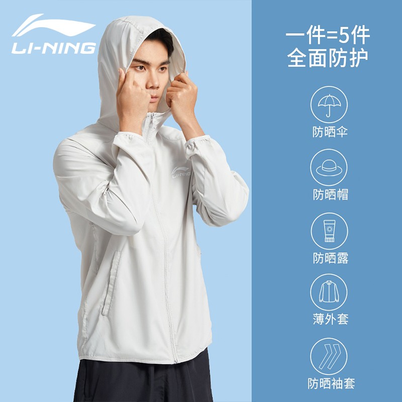 李宁防晒衣男夏季户外防紫外线皮肤衣薄款钓鱼防晒服跑步运动外套