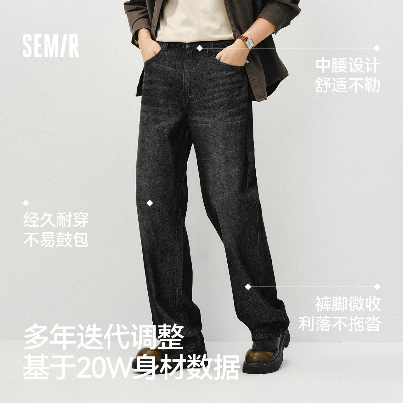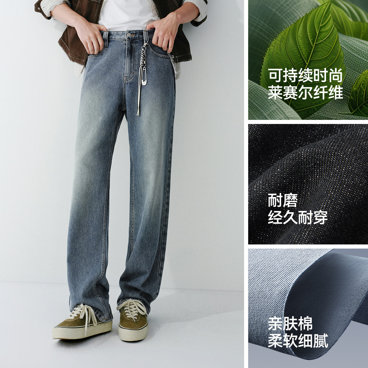 森柔牛仔森马牛仔裤男2026春夏直筒裤长裤原色复古美式水洗宽松潮