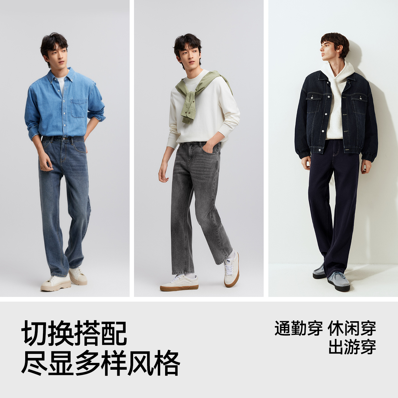 森柔牛仔森马牛仔裤男款2025新直筒裤长裤原色复古美式水洗宽松潮