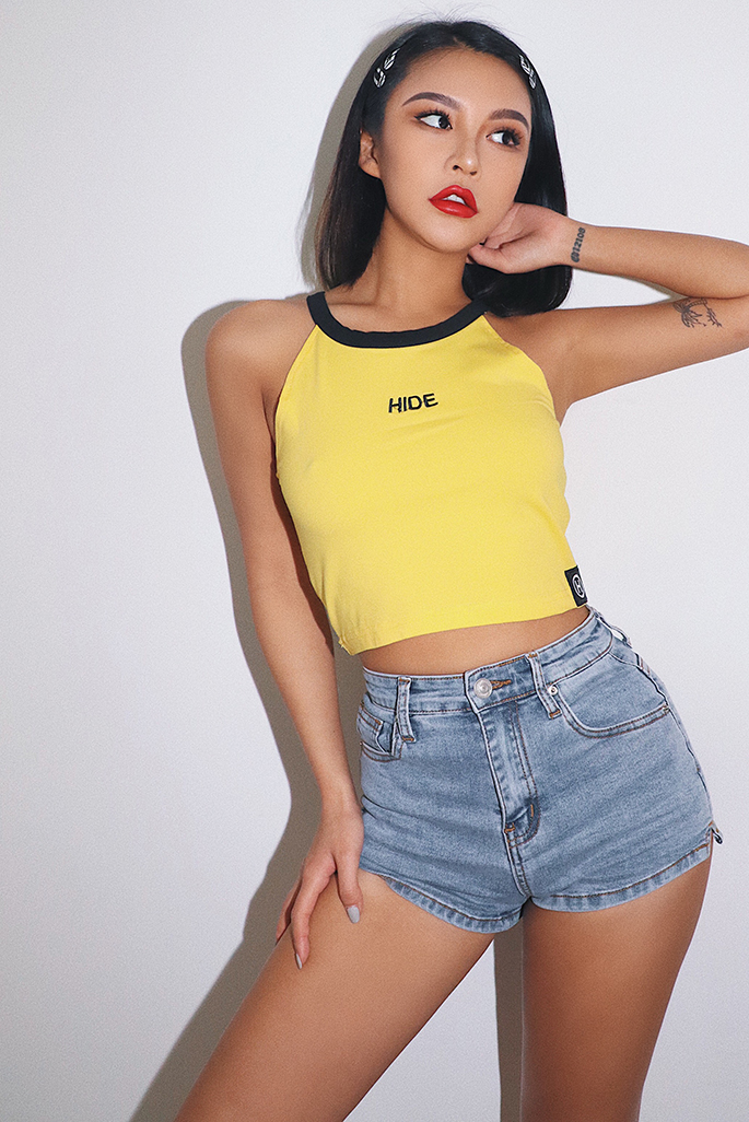 性感翘臀侧开叉高腰短裤学生热裤