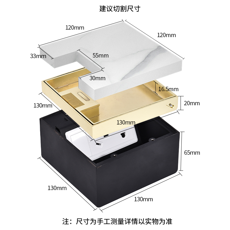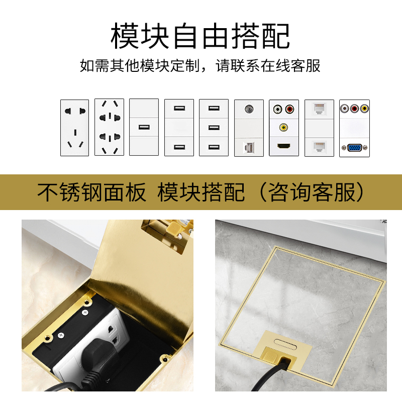 130金色大理石地插座隐形纯平超薄不锈钢防水嵌入隐藏式地板插座