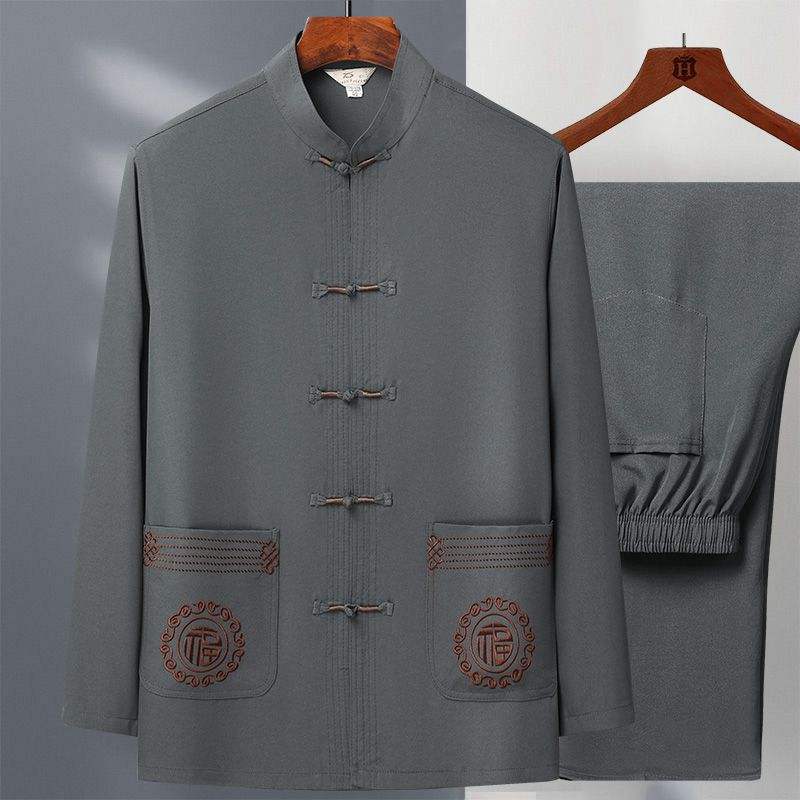 唐装男中老年人爸爸装春秋长袖两件套装太极服爷爷冰丝新中式汉服