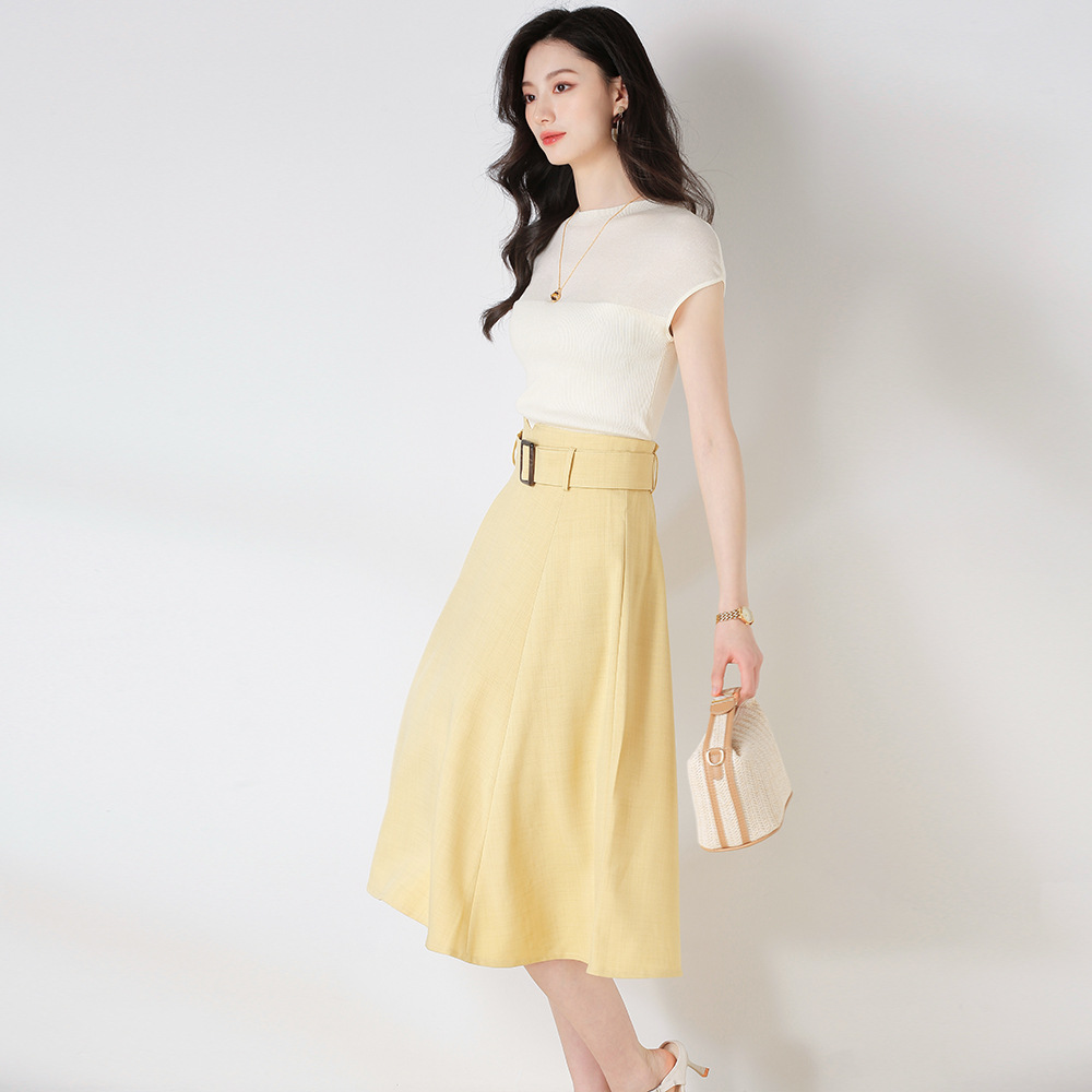 25夏季新款赫本风复古气质a字裙腰带半身裙中长款百搭显瘦伞裙女