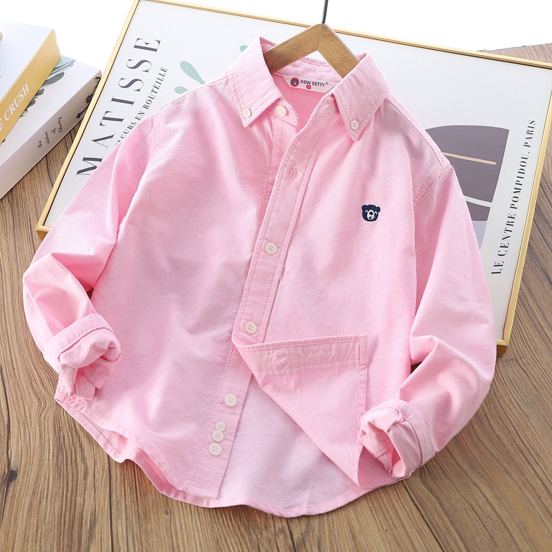 男童纯色长袖衬衫2025春季儿童牛津纺翻领休闲上衣中大童百搭衬衣