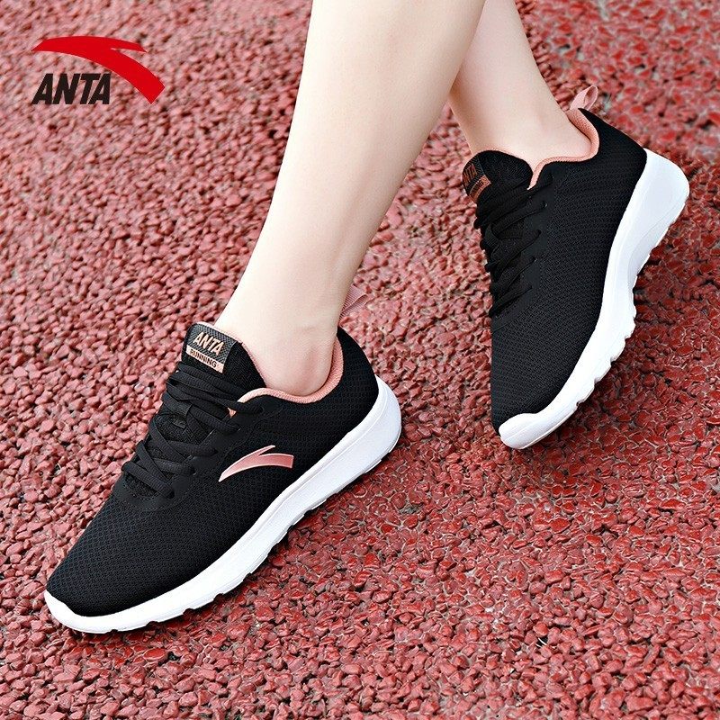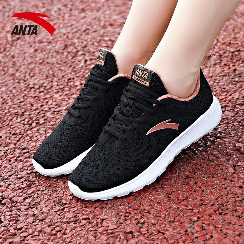 安踏女鞋运动鞋官方旗舰店黑色网鞋透气网面鞋子女轻便妈妈跑步鞋