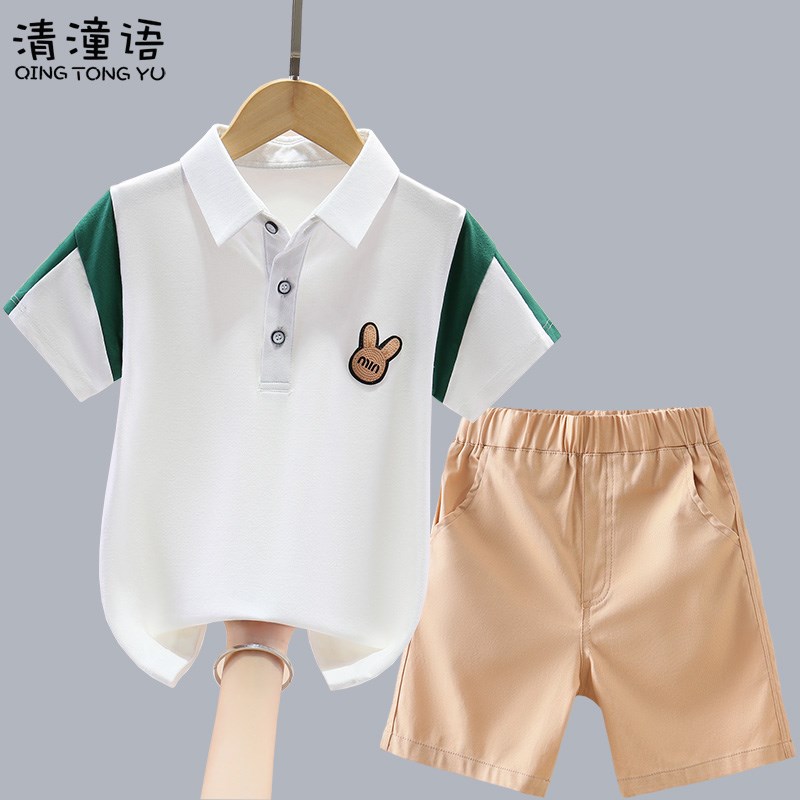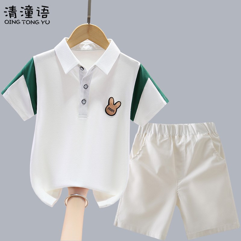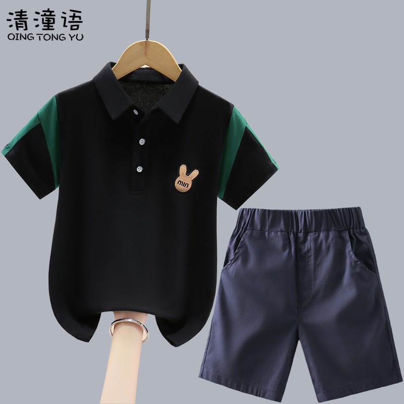 2024新款男童夏装套装中大童纯棉T恤中学生校服百搭儿童两件套潮