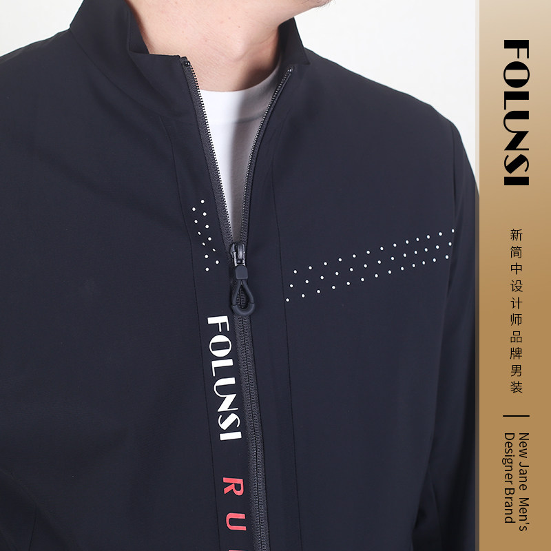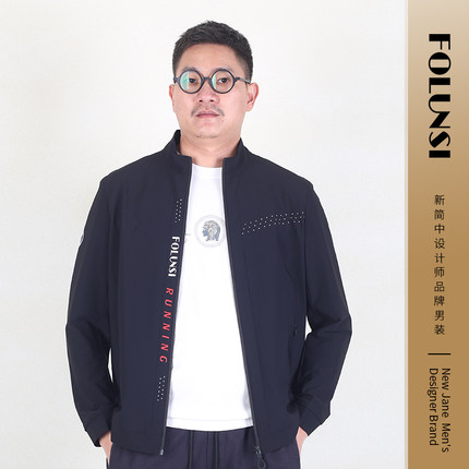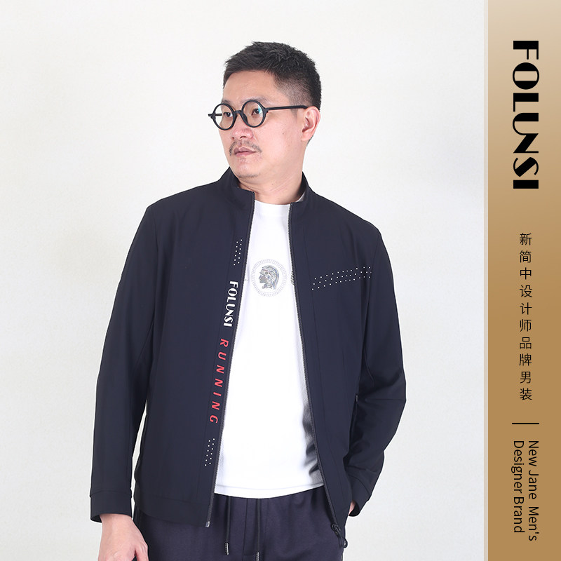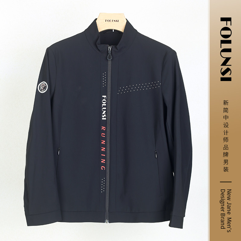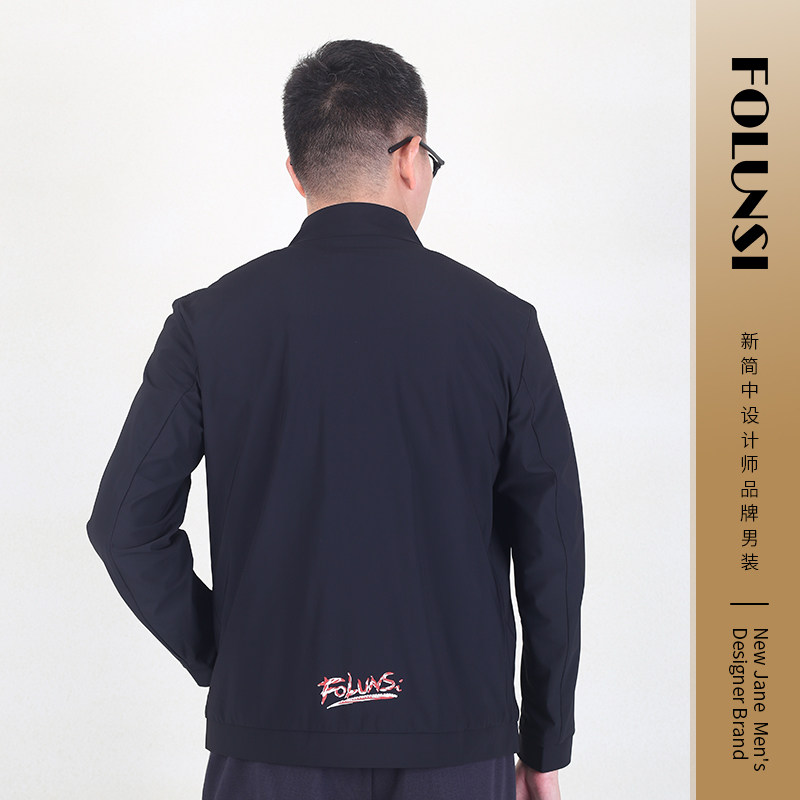 佛伦斯FOLUNSI春秋款潮流外套黑色刺绣青年拉链夹克上衣茄克