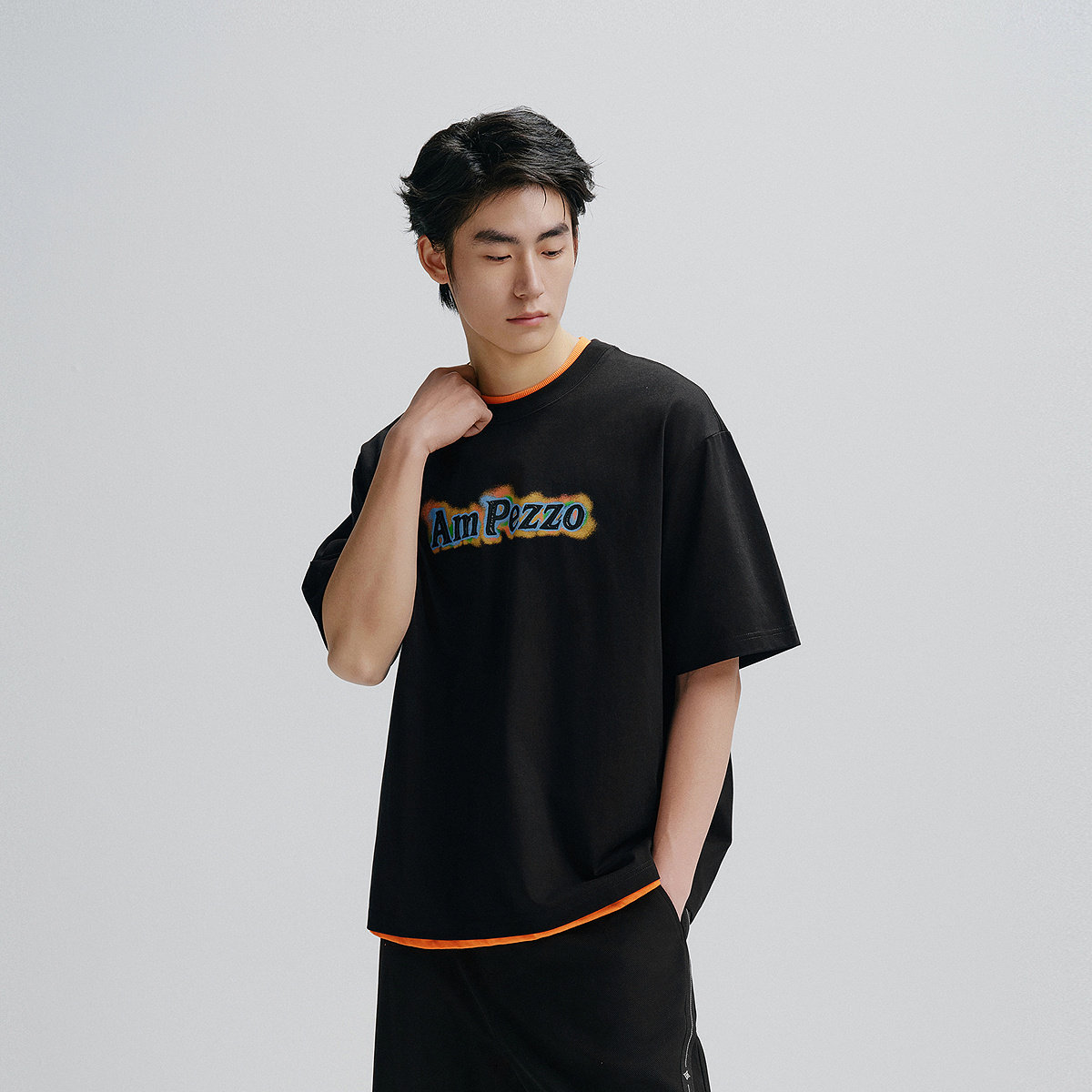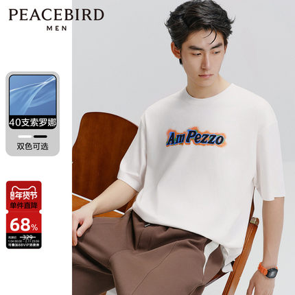 太平鸟男装 索罗娜短袖T恤男新款撞色印花体恤S