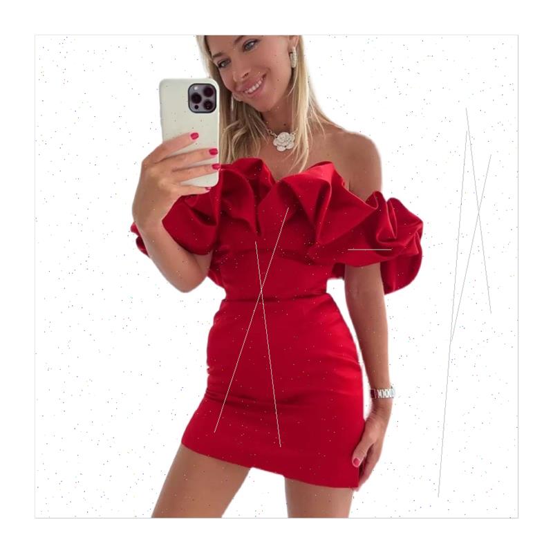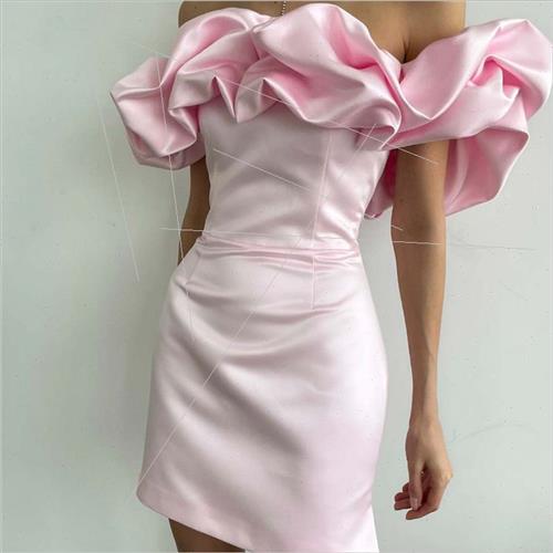 sexy party dress 女粉色性感一字肩荷叶边生日派对小礼服连衣裙