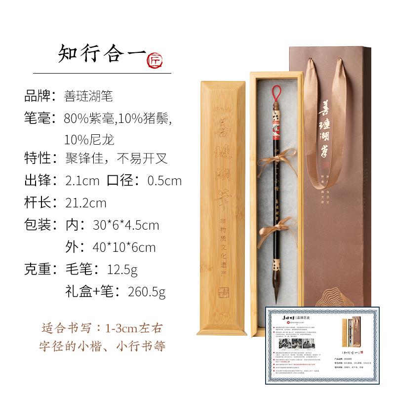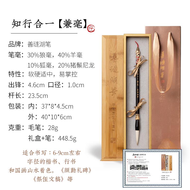 新款善琏湖笔知行合一毛笔湖笔狼毫兼毫礼盒隶书文房四宝小楷书专