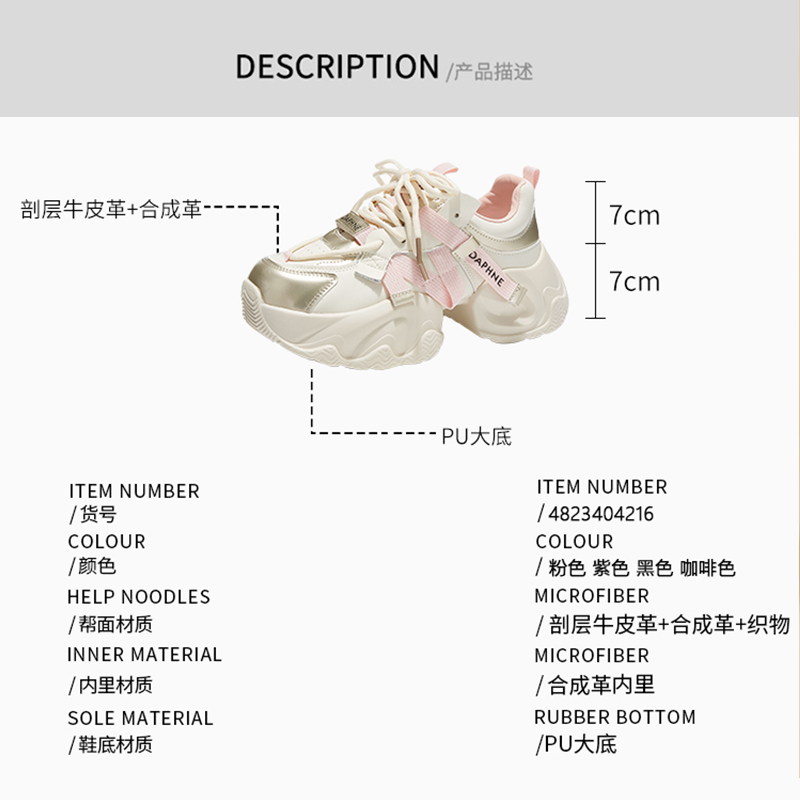 达芙妮粉色老爹鞋女厚底增高鞋2025巨好看的百搭炸街运动女鞋子新