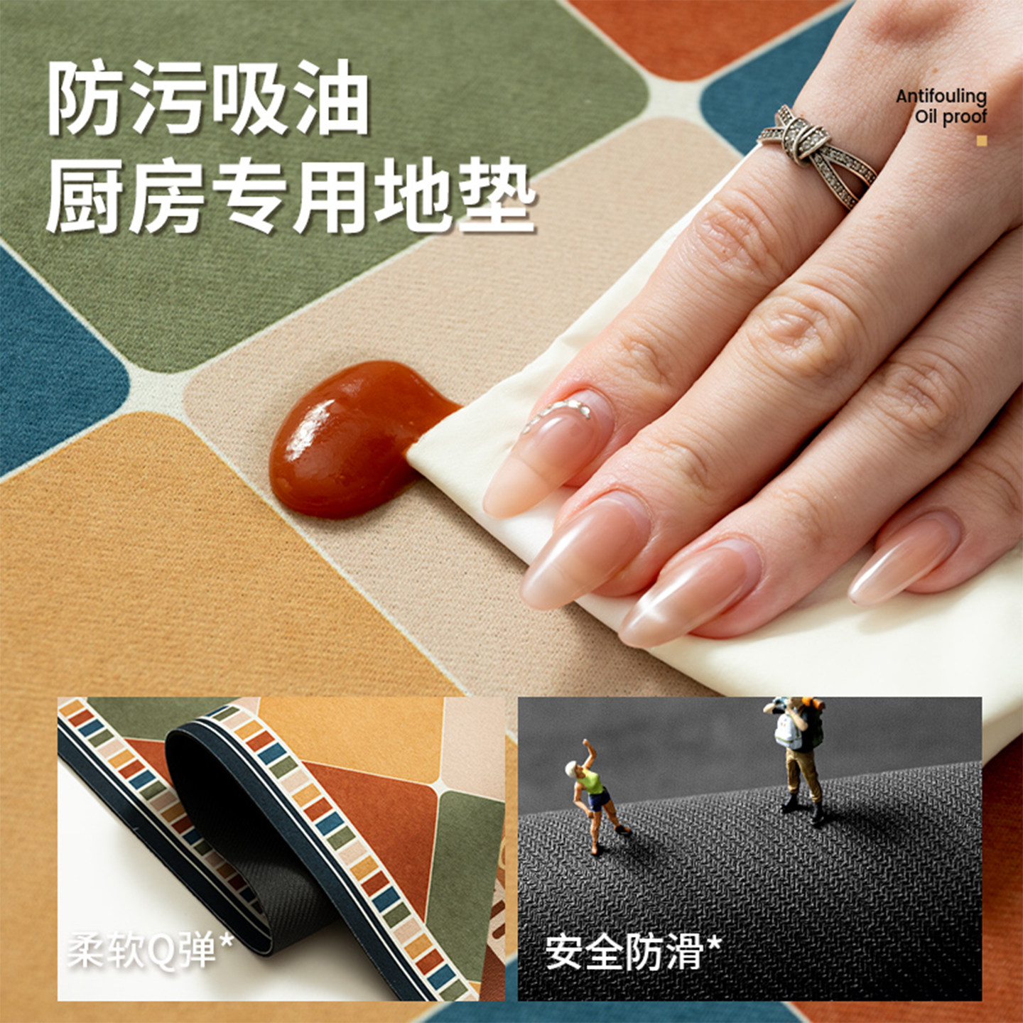 复古美式硅藻泥加厚厨房地垫防滑防油吸水垫专用脚垫地毯可擦免洗