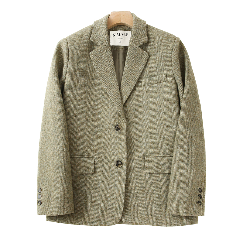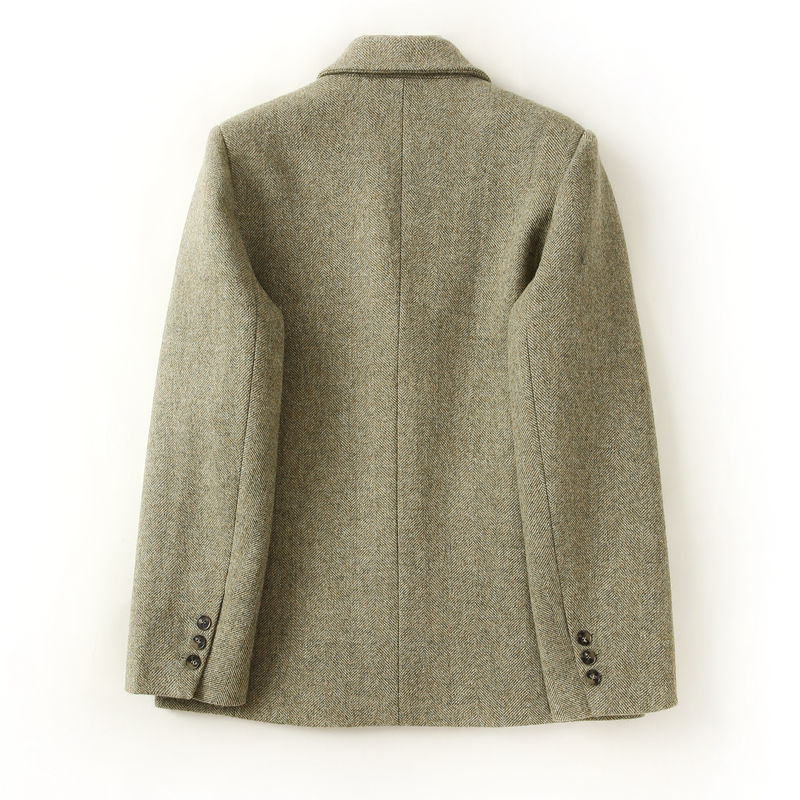 FBB WORKS 巴黎假日100%羊毛杂色单面呢西装女秋冬短款呢子外套