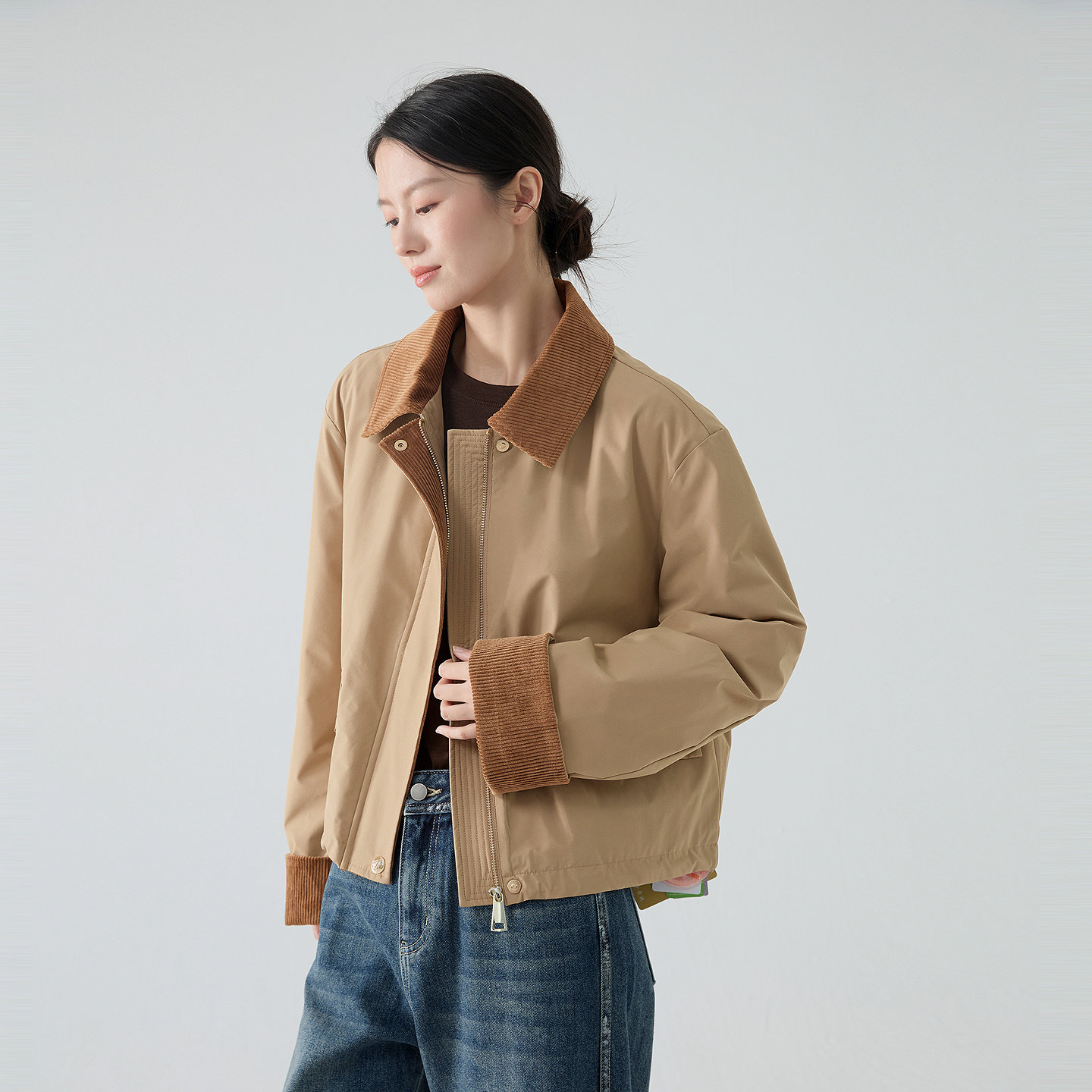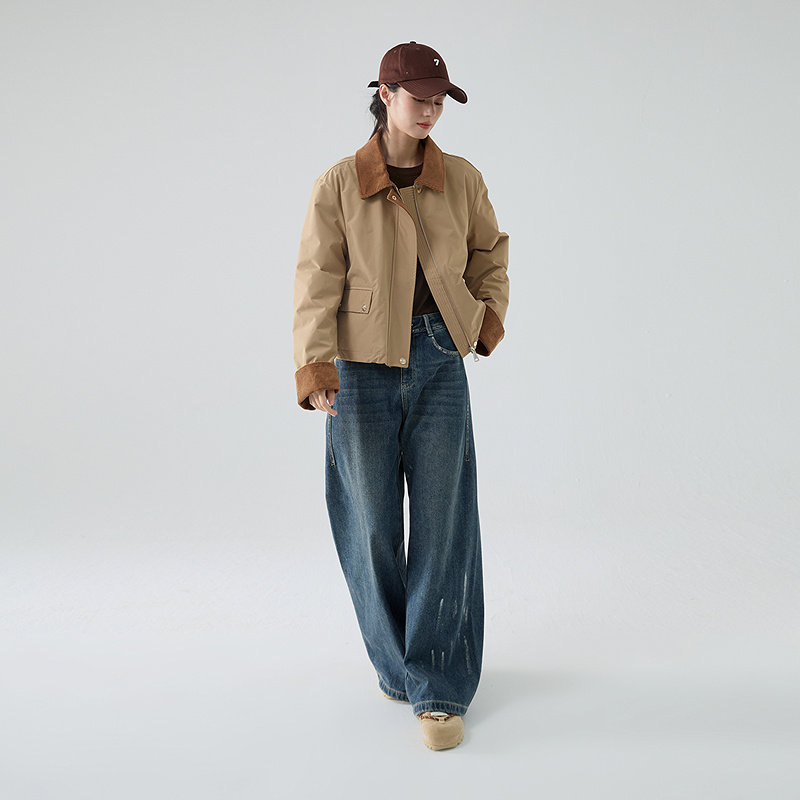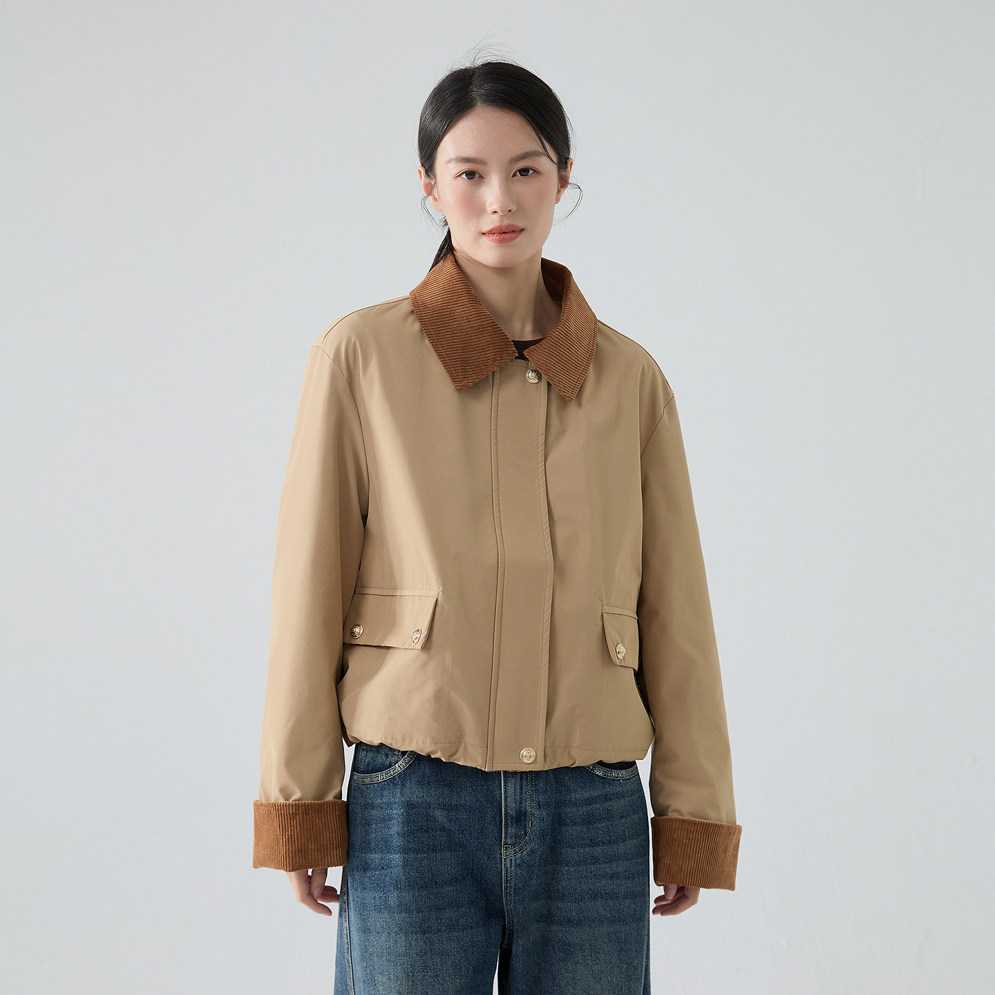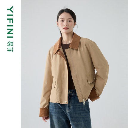 Yifini/易菲2025冬季新款白鹅绒衬衫式高级感巴恩风羽绒服外套女