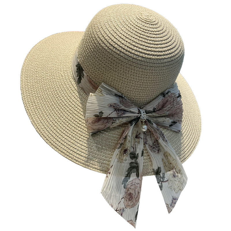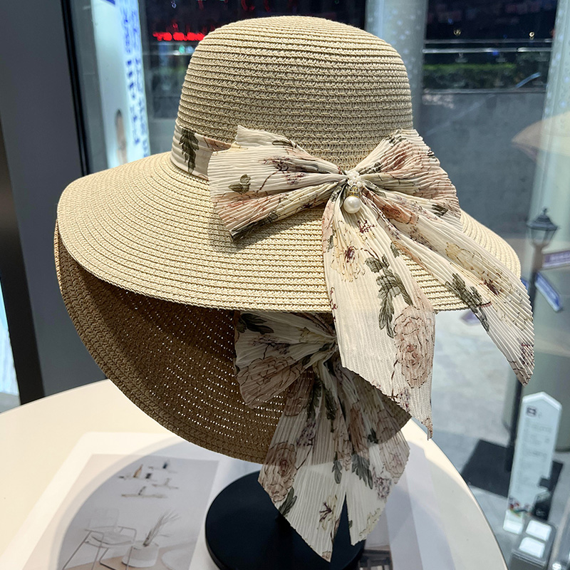 新款蝴蝶结飘带草帽女夏季遮脸防紫外线太阳帽海边度假大檐沙滩帽