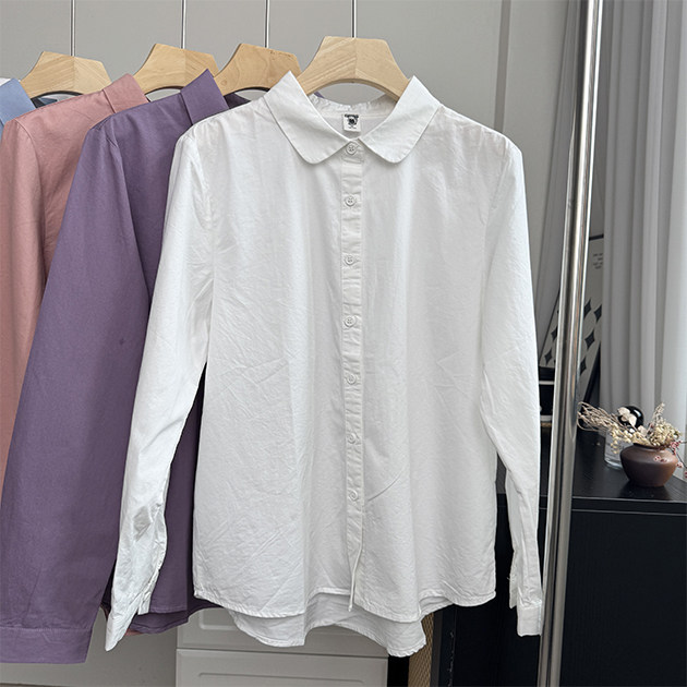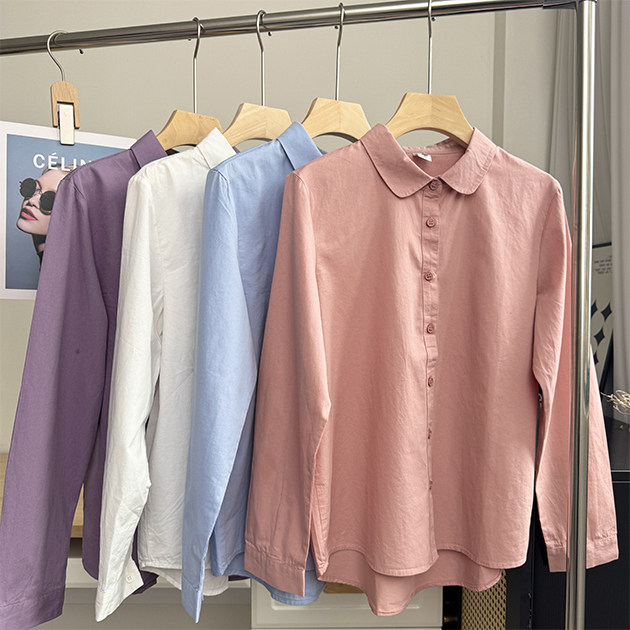 森系彼得潘娃娃领 纯色净版全棉女士衬衫 宽松大码叠穿文艺衬衣春