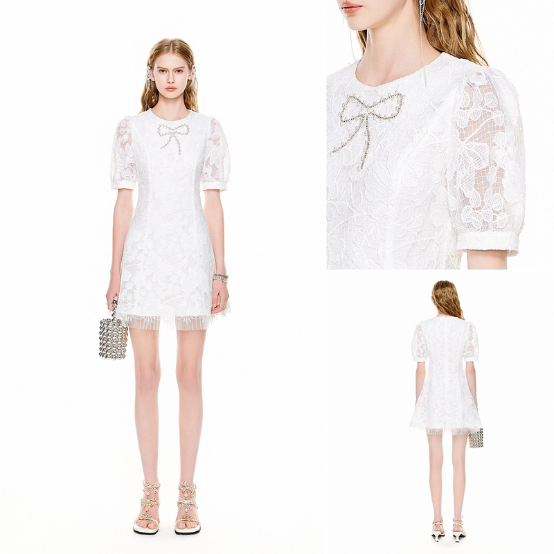 MISSCOCOON股线蕾丝绣花蝴蝶结钻链连衣裙夏款
