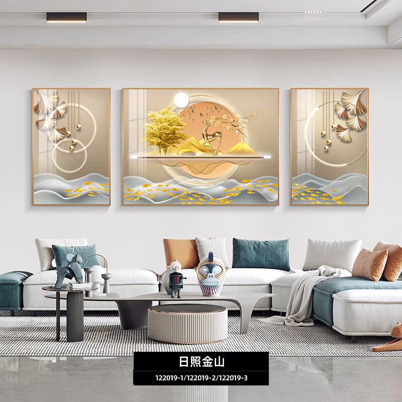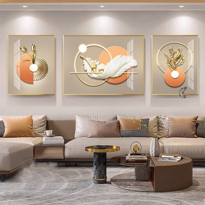 轻奢客厅装饰画现代简约沙发背景墙三联挂画高档大气晶瓷镶钻壁画