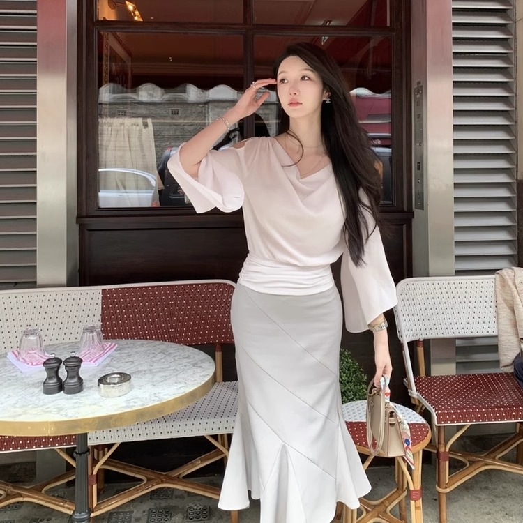 斜阳Wcouture原创百搭斜裁温柔满分曲线灰色高腰包臀鱼尾半身裙