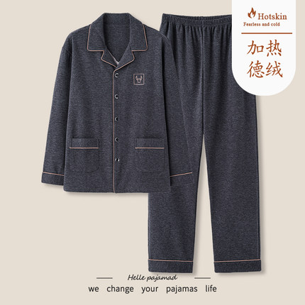 浪莎德绒睡衣男士秋冬季长袖开衫加厚保暖宽松大码薄绒家居服套装