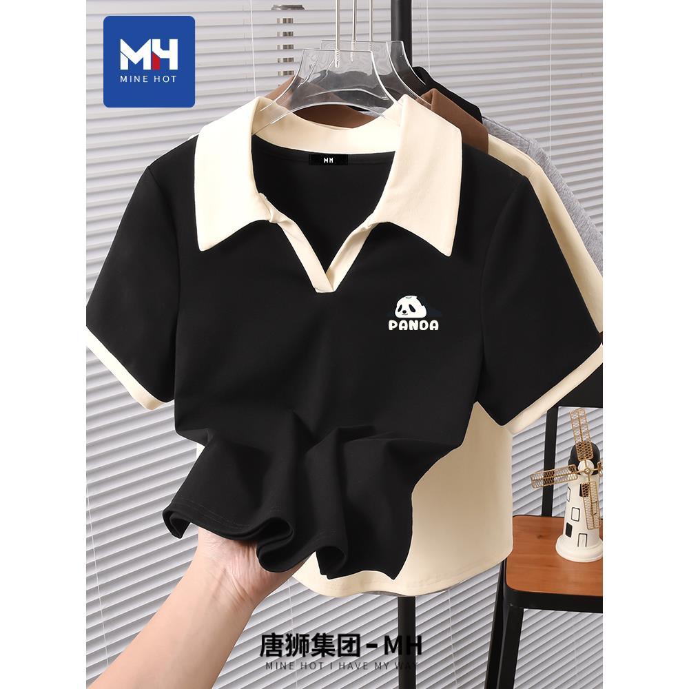 唐狮集团MHV领短袖t恤女2025新款夏装上衣修身polo衫宽松休闲半袖