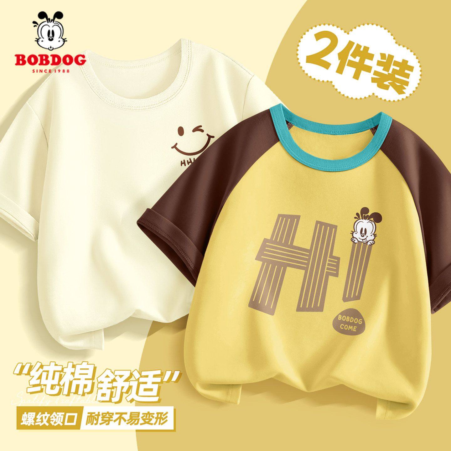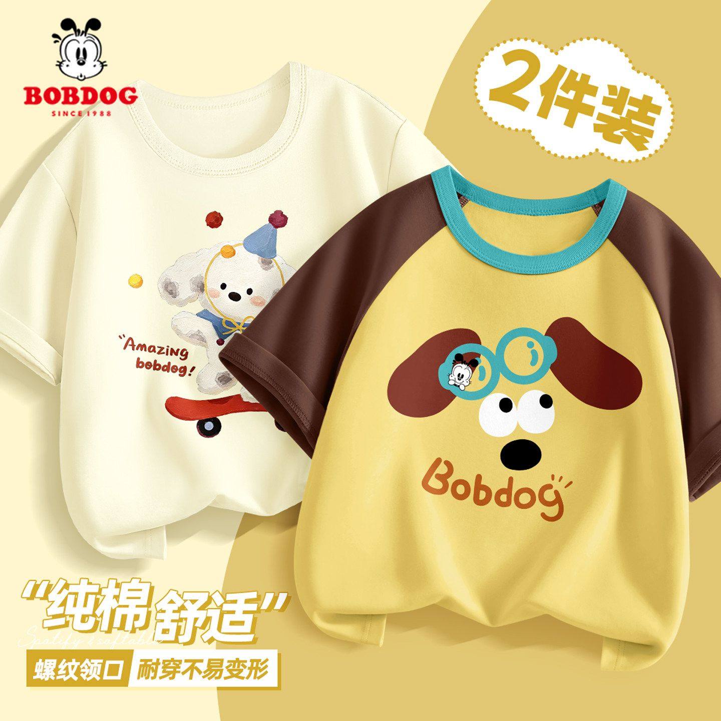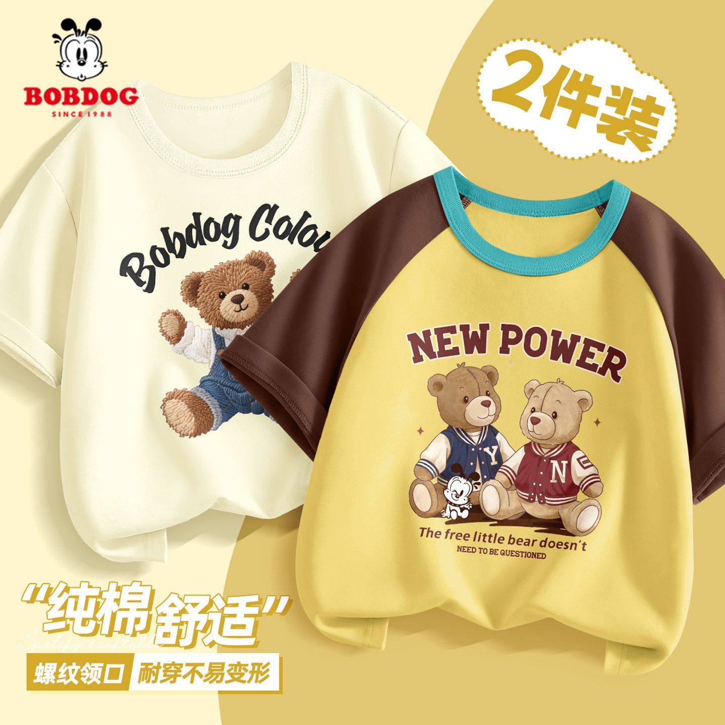 巴布豆男童短袖t恤夏装2026新款宽松薄款大童纯棉小熊衣服酷帅潮
