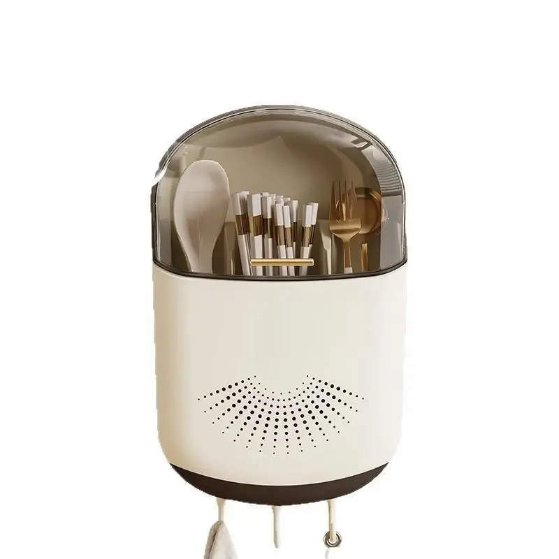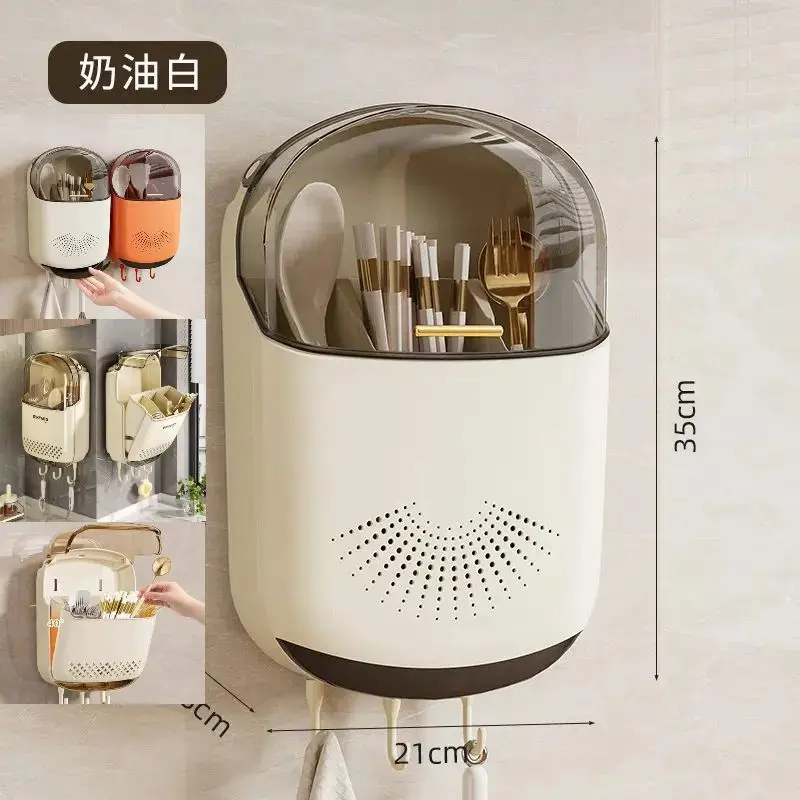 【筷子收纳筒】筷笼免打孔厨房置物架勺子收纳桶塑料挂墙式沥水