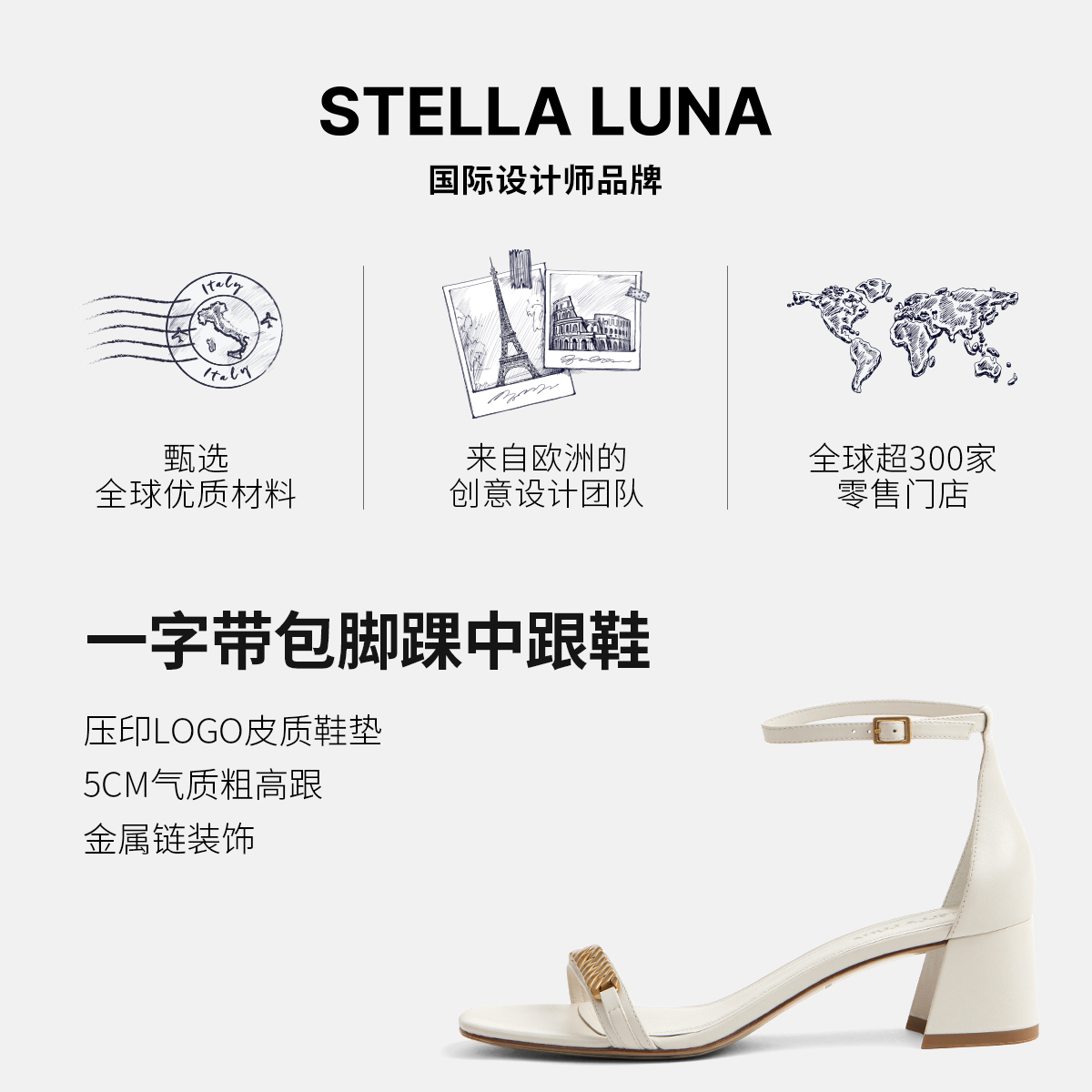 STELLA LUNA女鞋25SS春夏新款金属链装饰一字带包脚踝羊皮中跟鞋