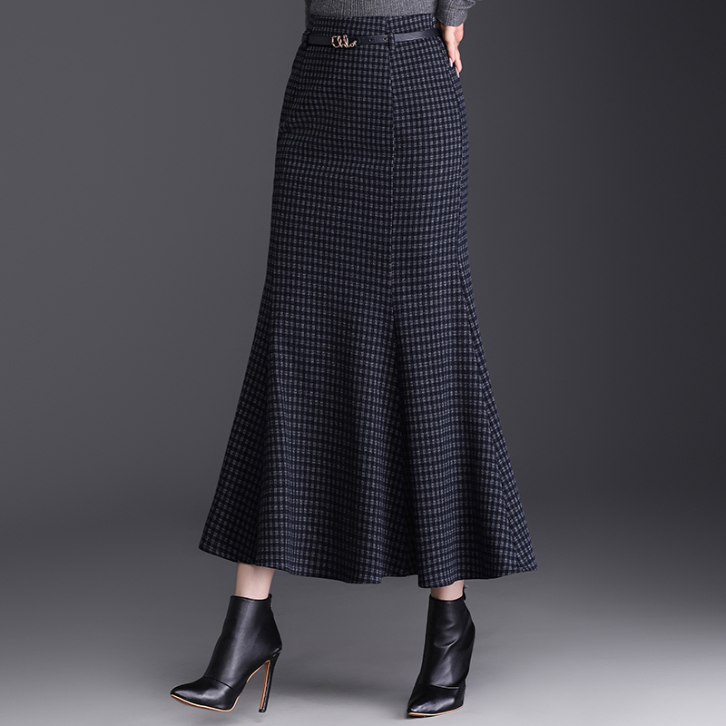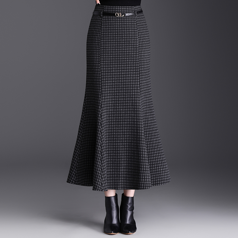 秋冬格子毛呢鱼尾长裙包臀半身裙