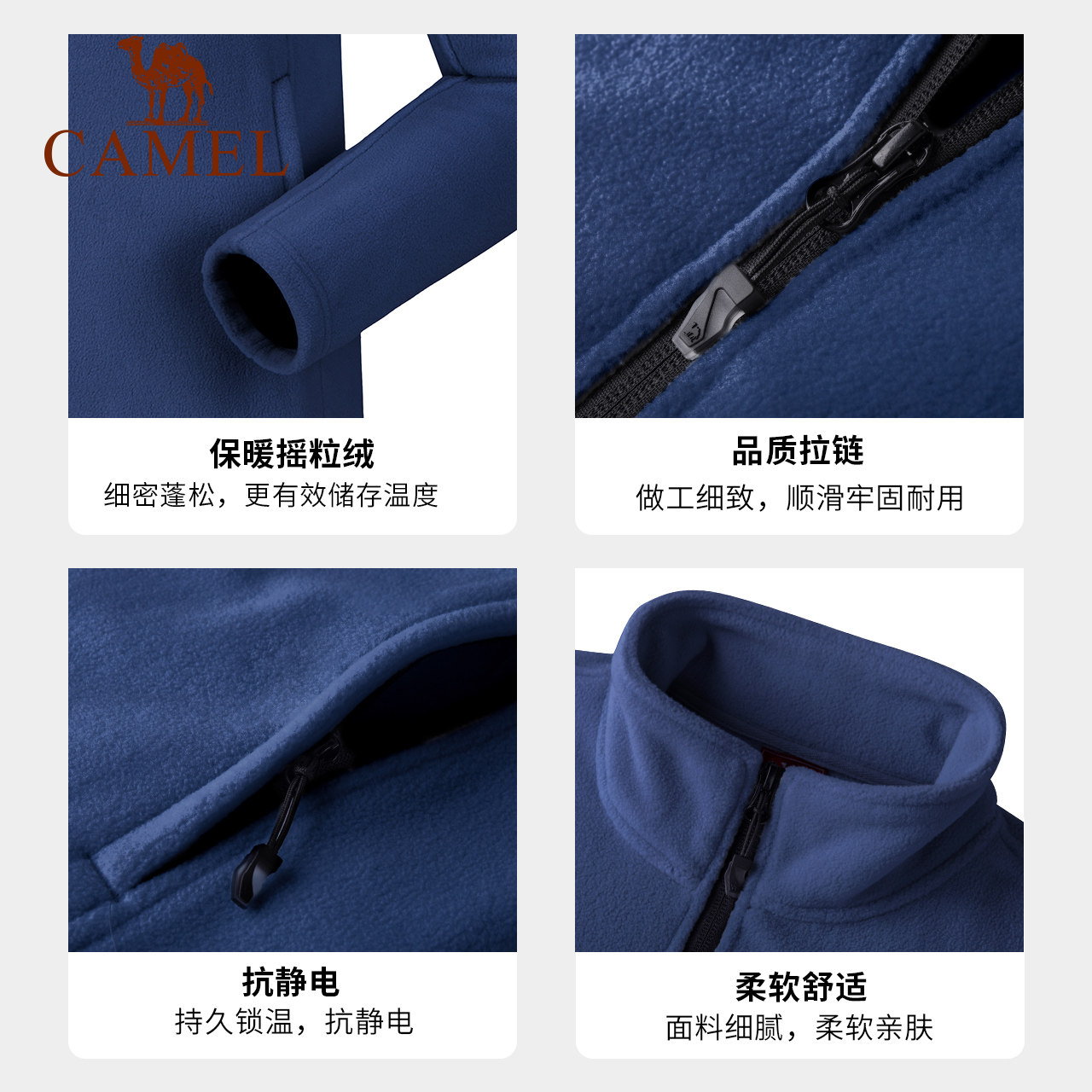 骆驼抓绒衣女士春季摇粒绒卫衣保暖宽松潮流百搭立领开衫徒步外套