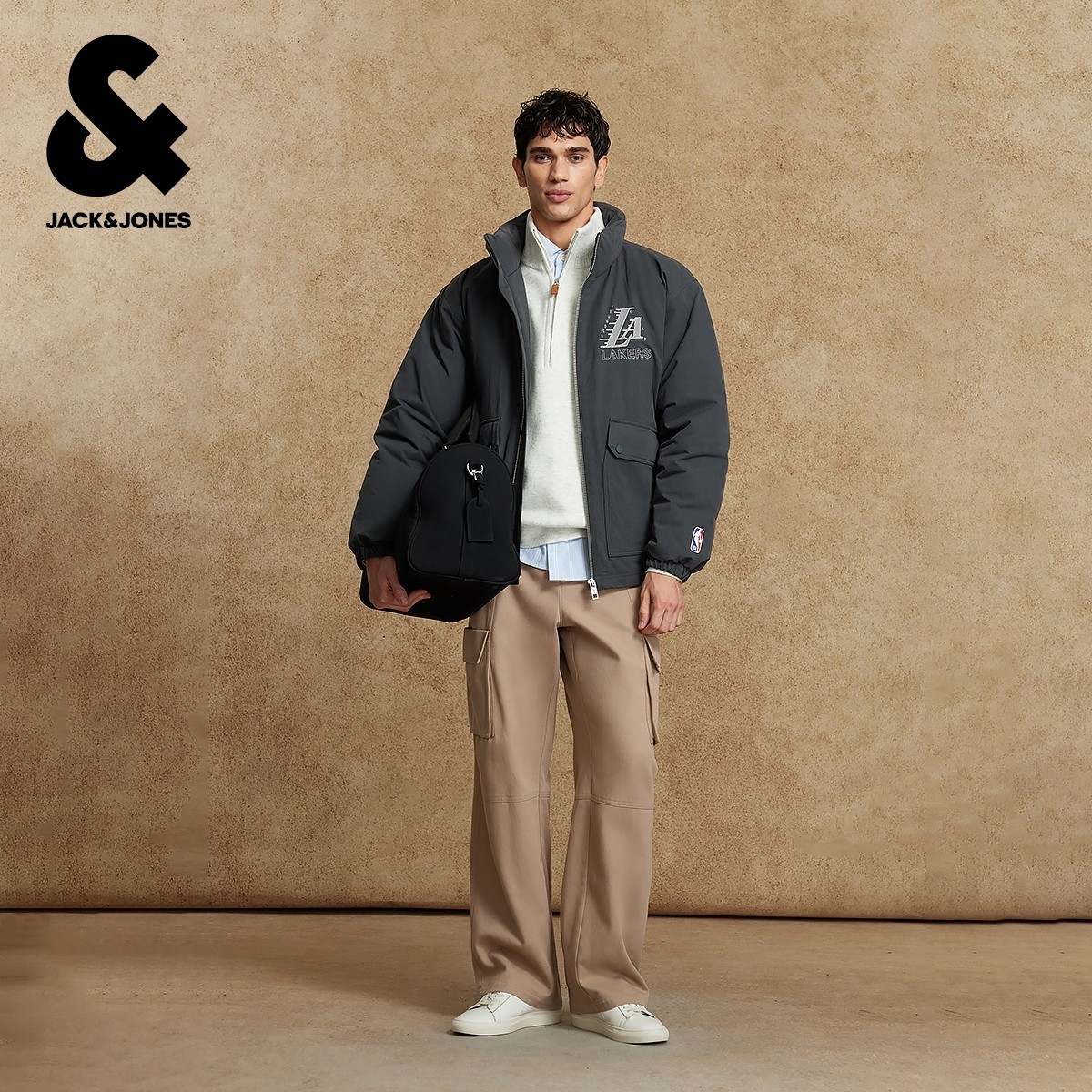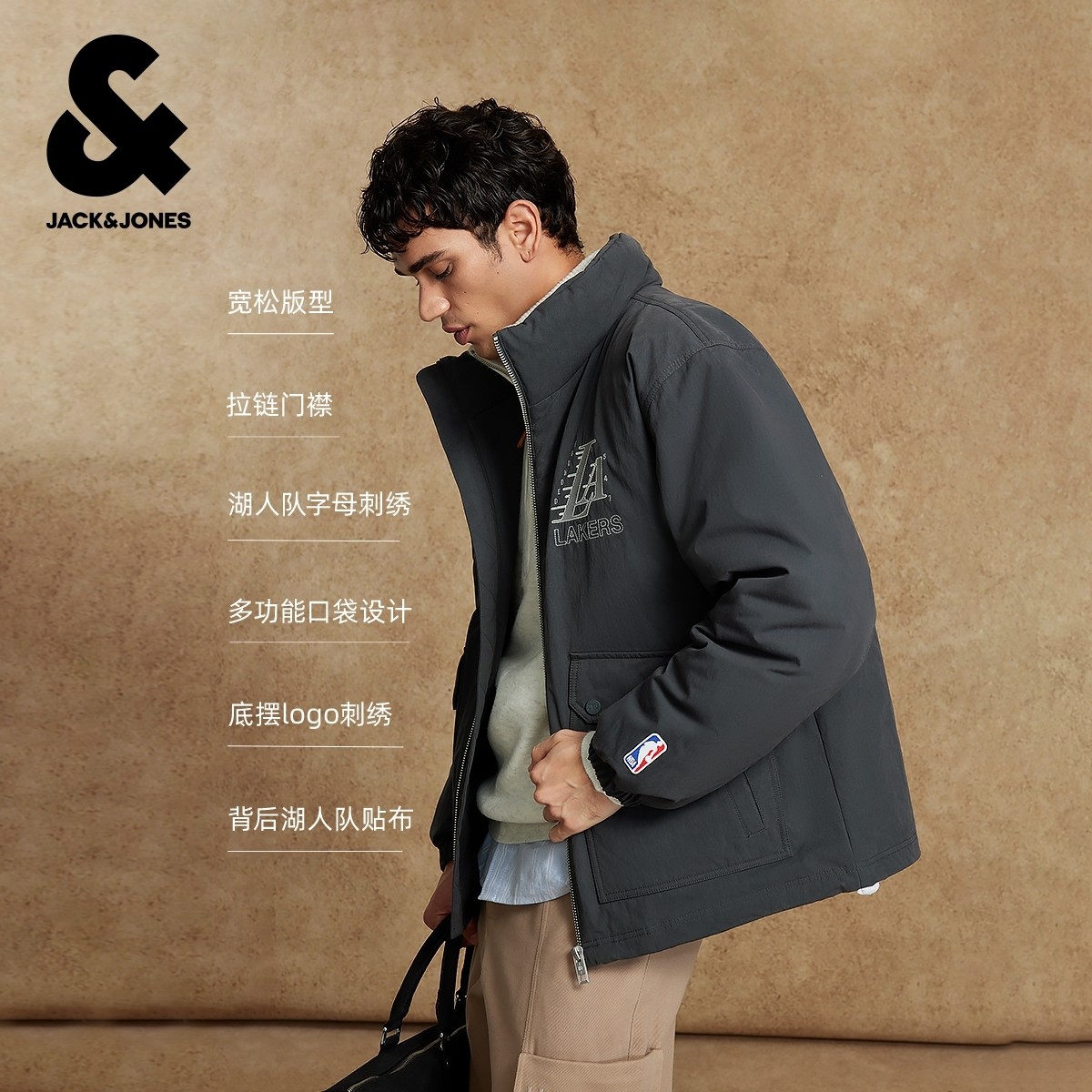 杰克琼斯NBA联名款男装羽绒服秋冬时尚百搭贴布刺绣立领保暖外套