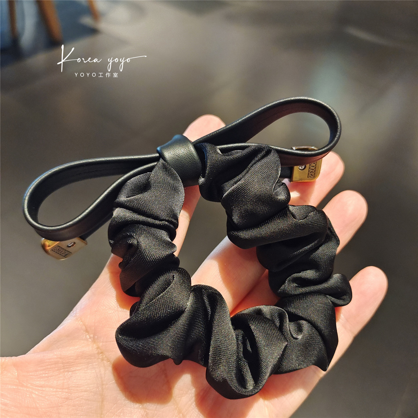 韩国新款皮质蝴蝶结发圈女高级感大肠圈头绳扎头发皮筋发饰头饰