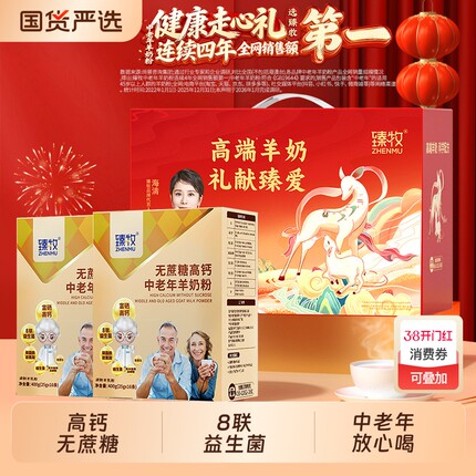 送礼臻牧中老年羊奶粉无蔗糖高钙益生菌正品400g*2盒老年人富硒