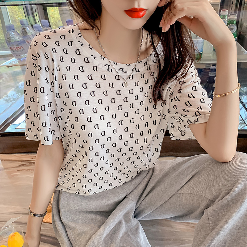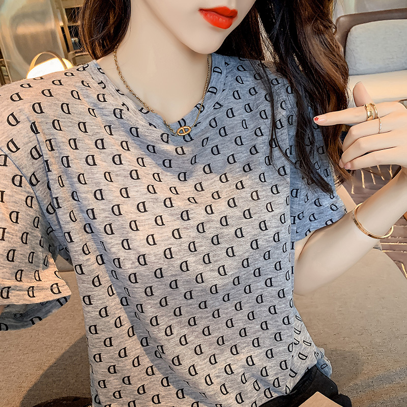 纯棉短袖T恤女2022夏新款薄款宽松体恤衫设计感字母印花上衣ins潮