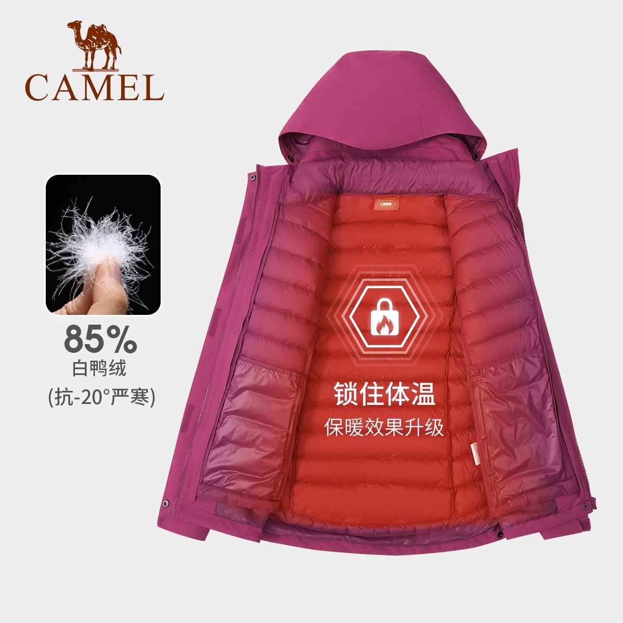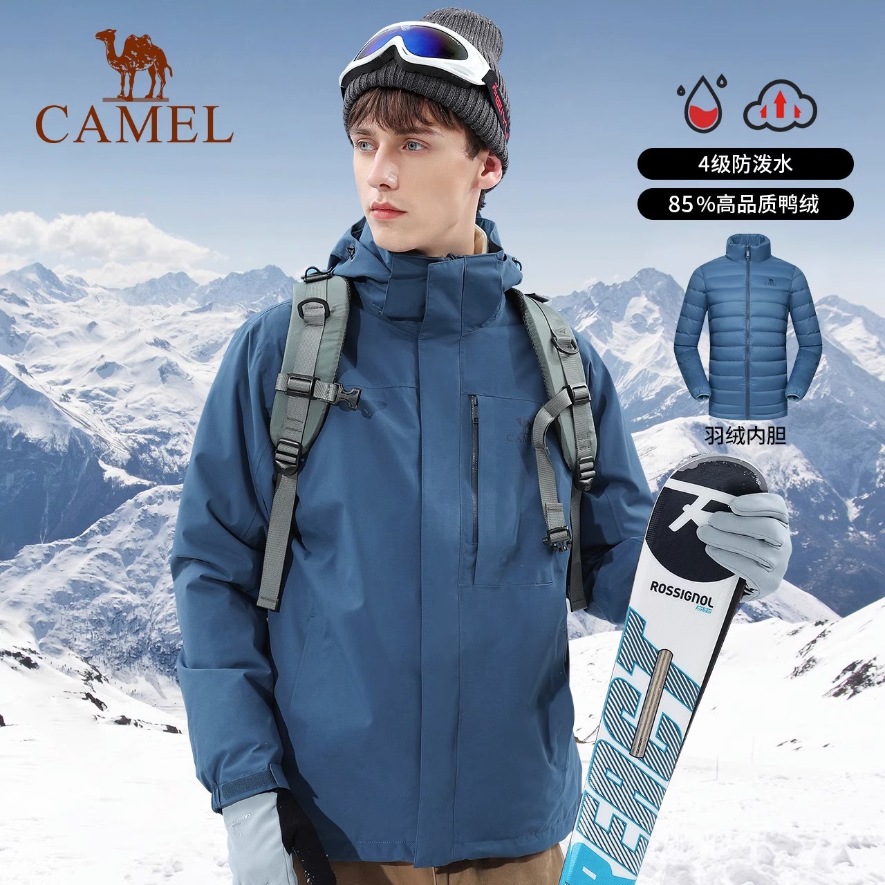 骆驼600蓬羽绒内胆冲锋衣男女三合一可拆卸加绒加厚防风防水外套