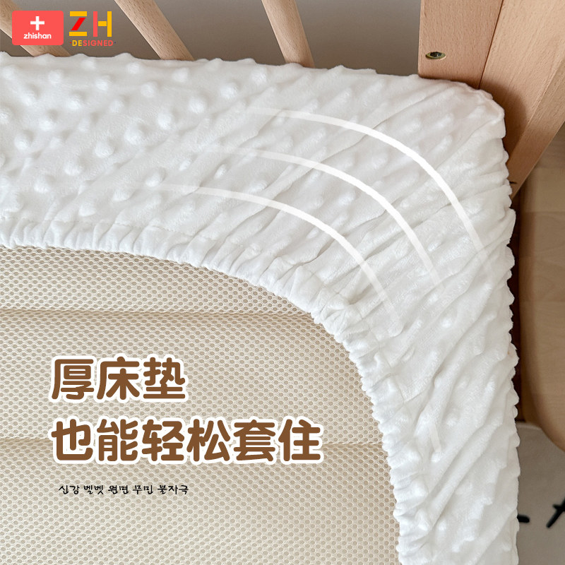 婴儿床笠纯棉a类母婴级豆豆绒床单宝宝专用拼接床秋冬牛奶绒床罩