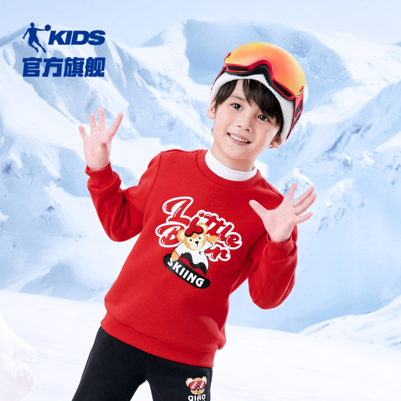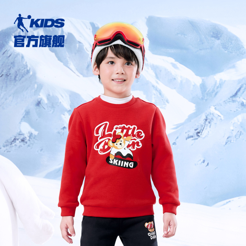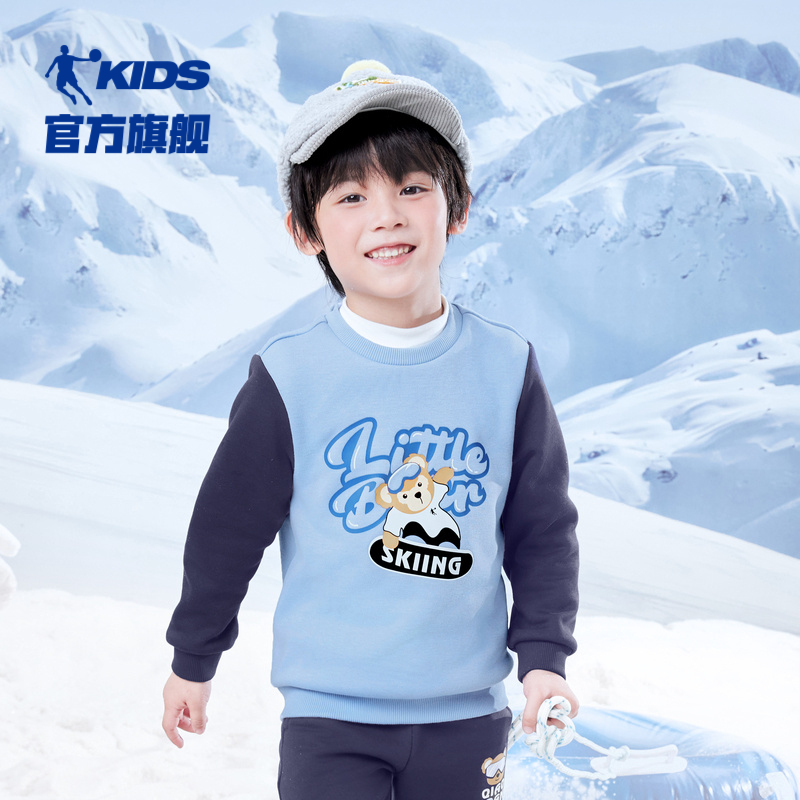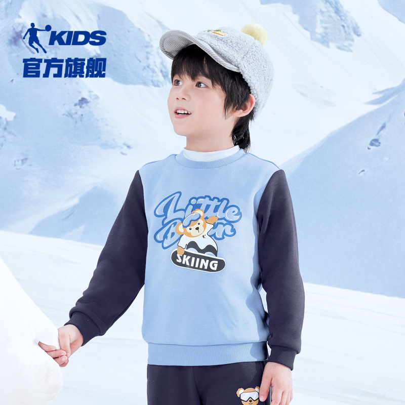 乔丹童装宝宝加绒卫衣2025冬季新款小童保暖内搭上衣男童圆领衣服