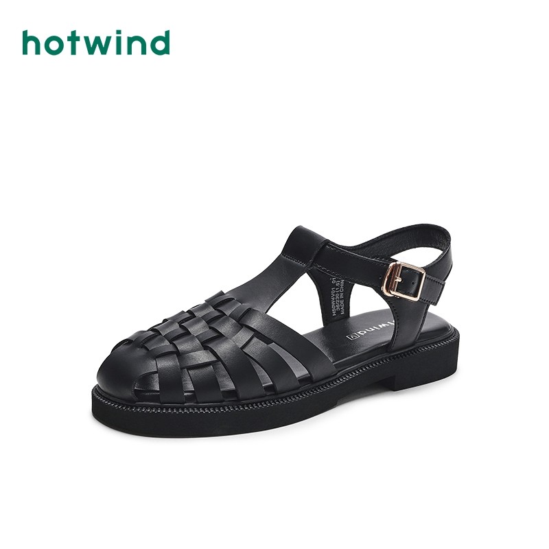 热风女鞋24夏新款女士平底罗马凉鞋复古包头编织猪笼鞋百搭女鞋