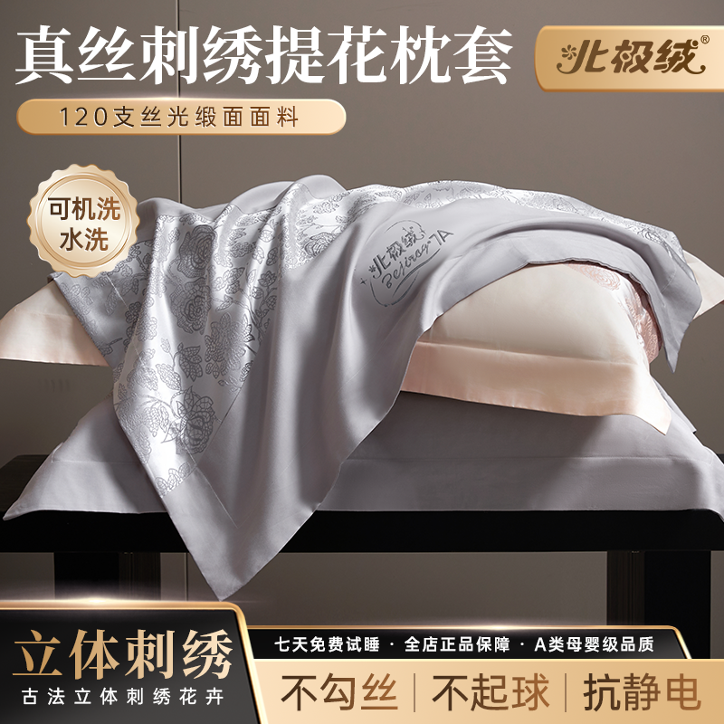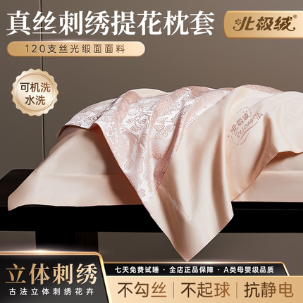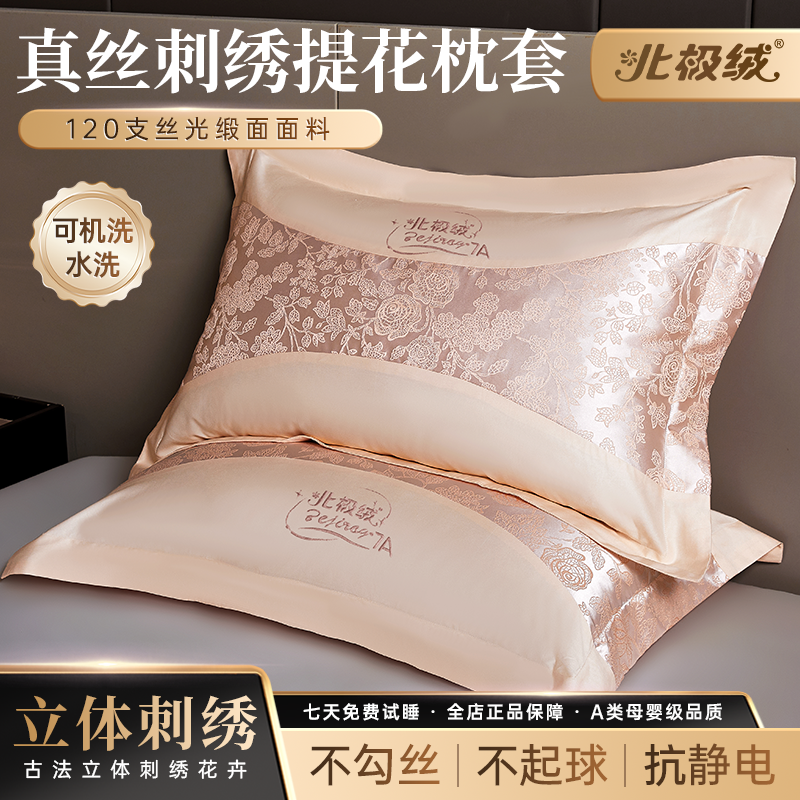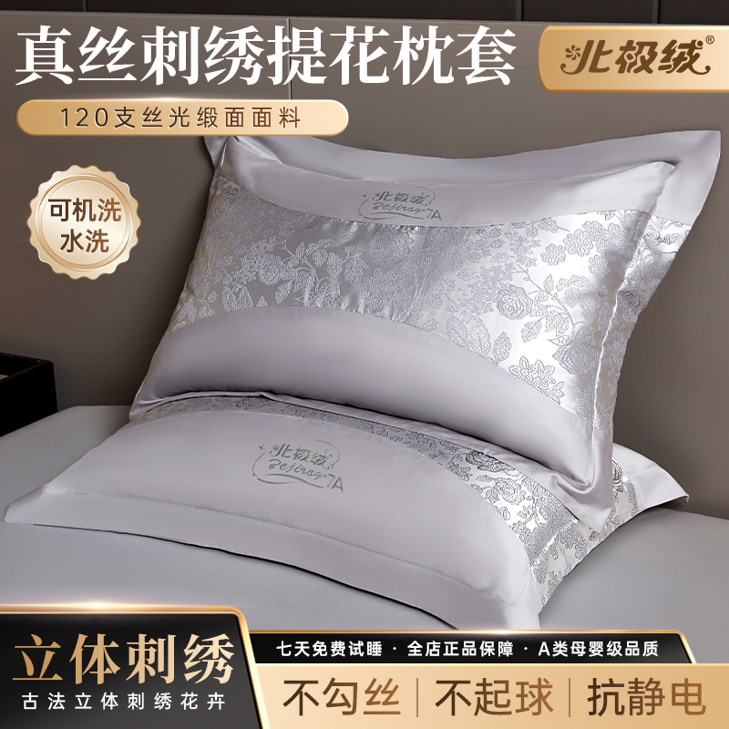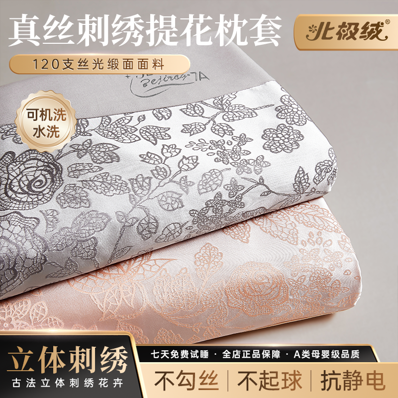 北极绒A类120支真丝立体提花刺绣枕套缎面面料单人欧式高端轻奢