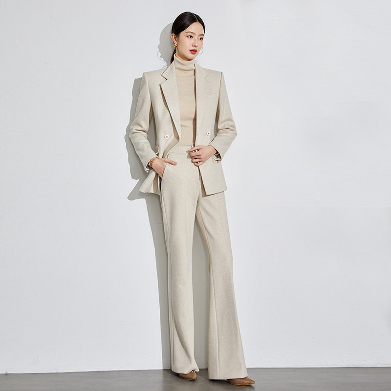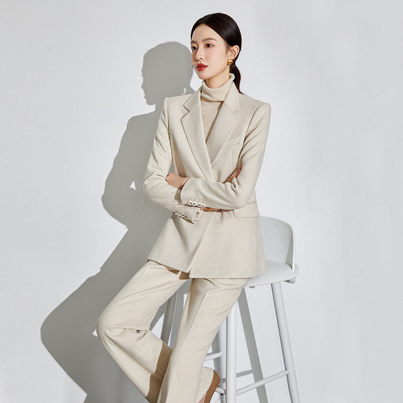 米白色修身西装外套女高级感2025秋冬加厚两件套温柔百搭醋酸套装