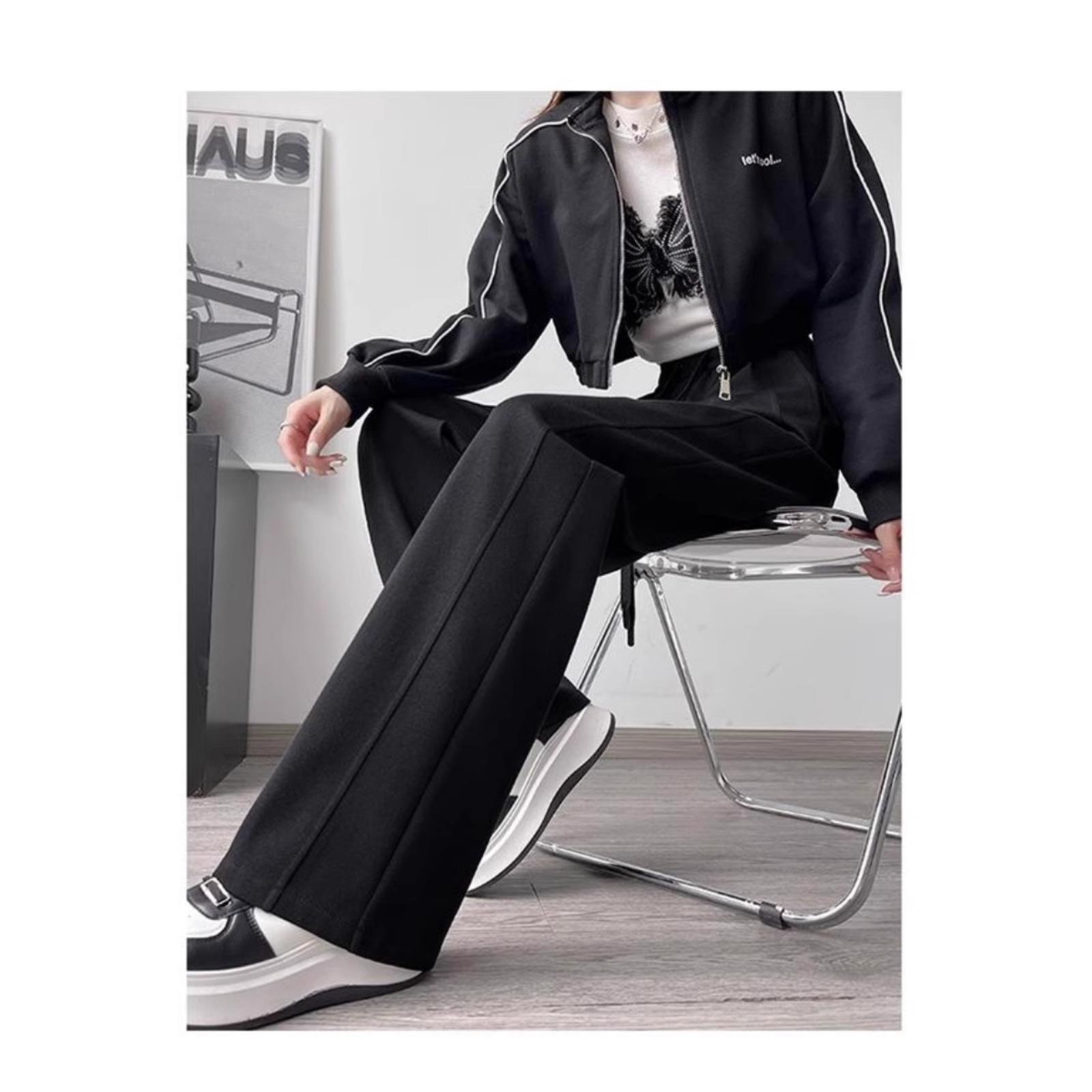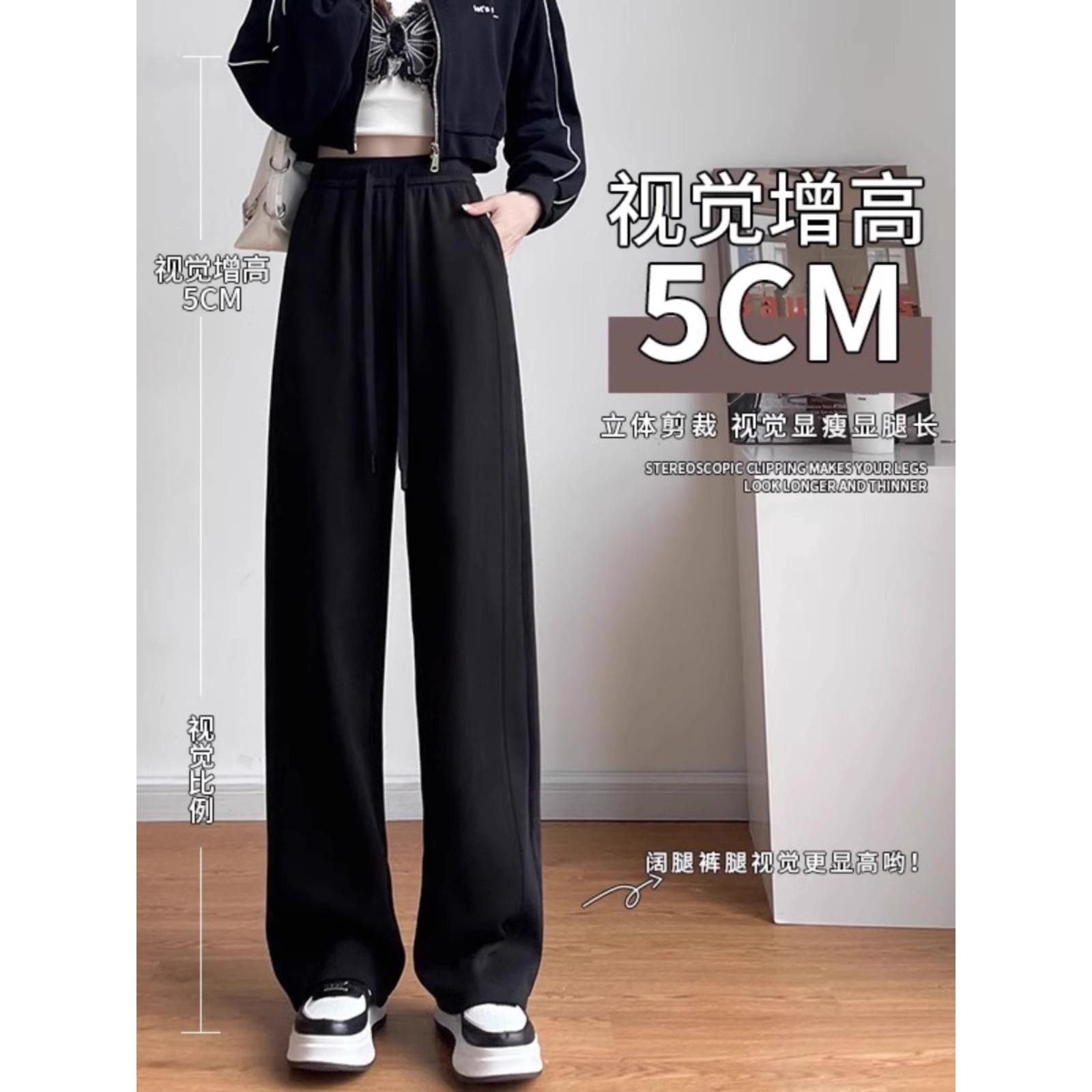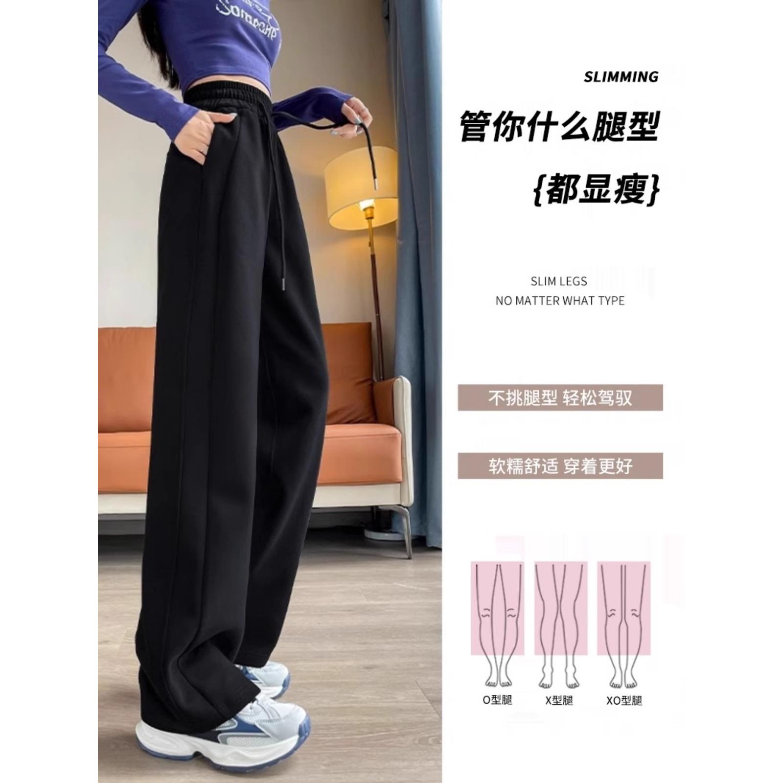 大码胖mm窄版阔腿裤女2025新款秋冬运动裤黑色小个子直筒休闲卫裤