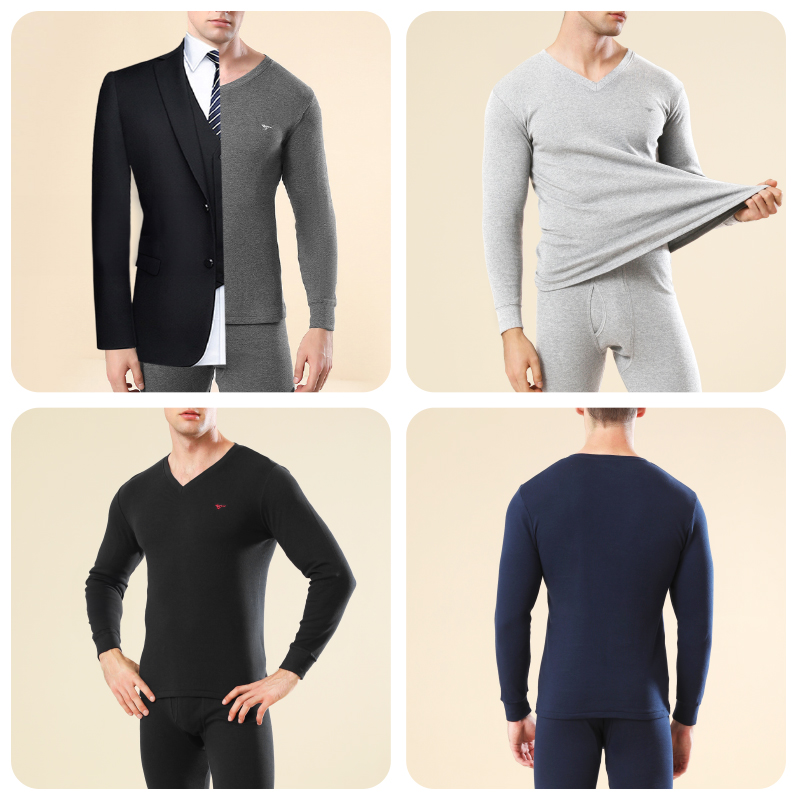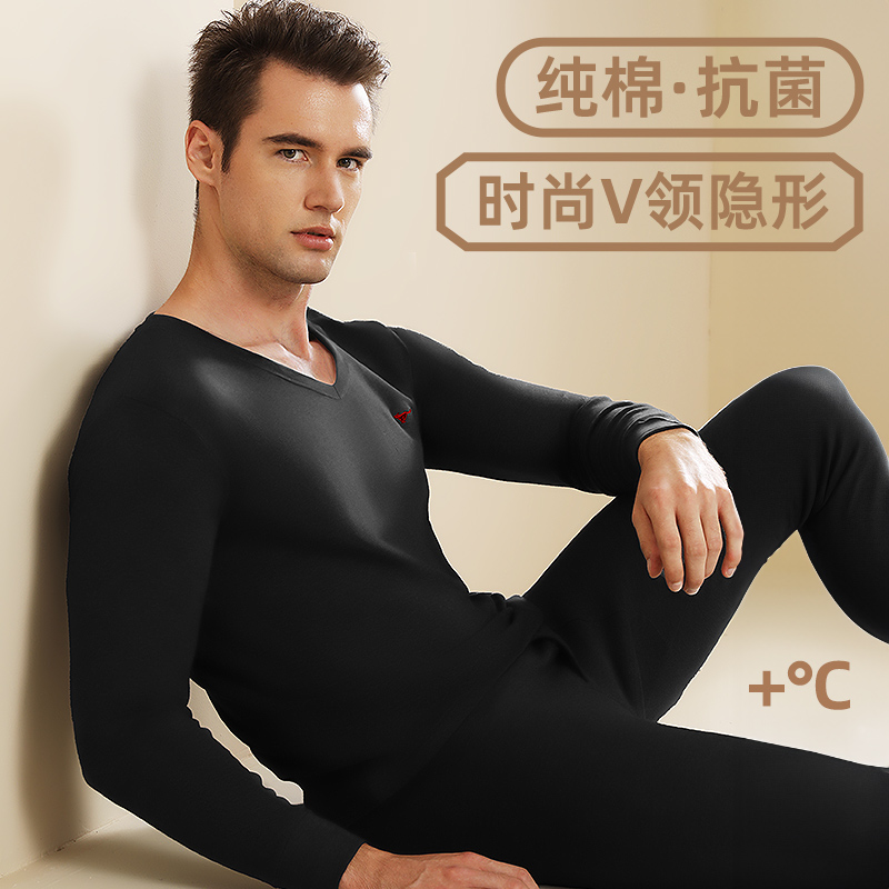 七匹狼纯棉保暖内衣男V领打底衫t全棉单上衣抗菌棉毛衫加大码秋衣