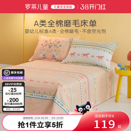 罗莱儿童全棉磨毛床单单件学生宿舍单双人保暖床上用品