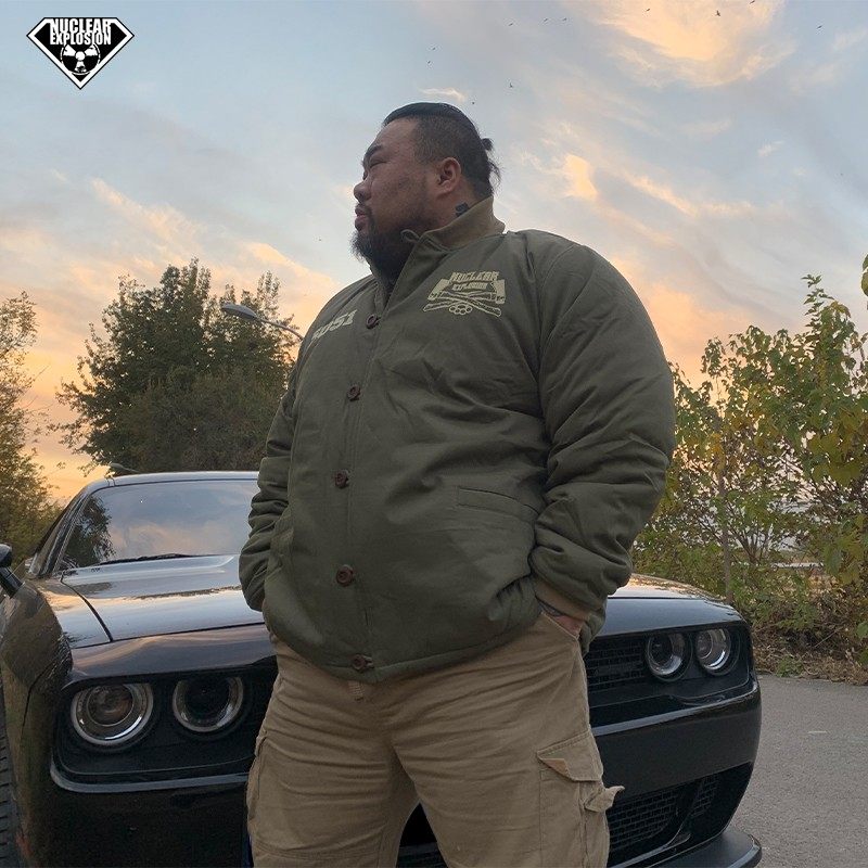 核爆炸5051新款立领短款超大码加厚保暖复古军绿粗布棉衣棉服棉袄
