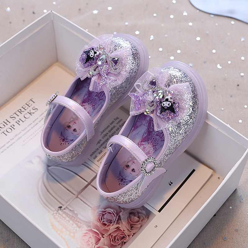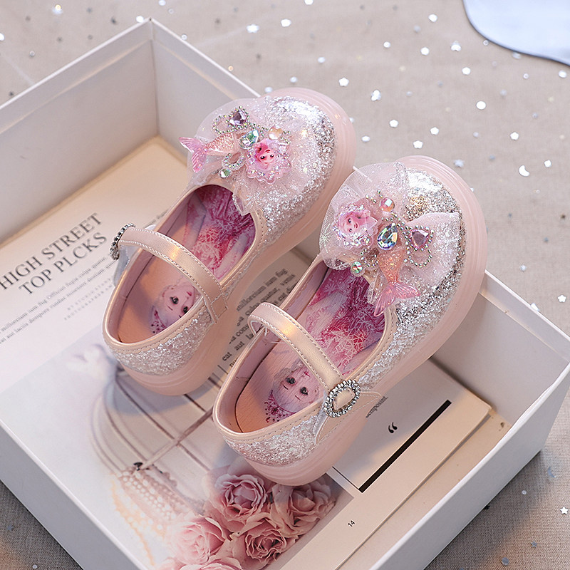 闪灯女童小皮鞋爱莎公主鞋2026春秋新款儿童水晶鞋亮灯单鞋女孩鞋