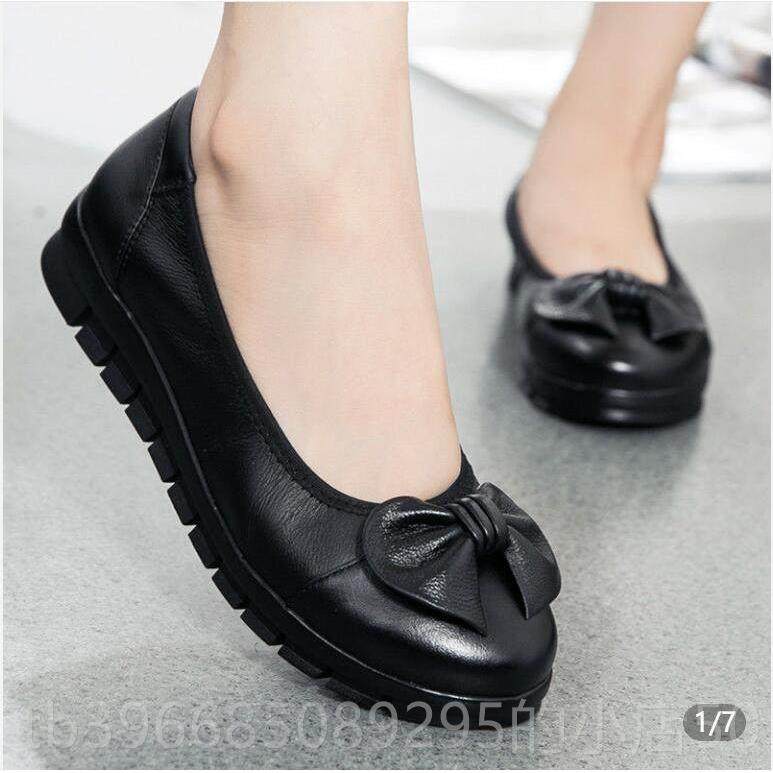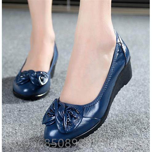 高档春秋妈真软底单鞋皮平底妈女鞋大码鞋中跟中老年舒适坡跟女士