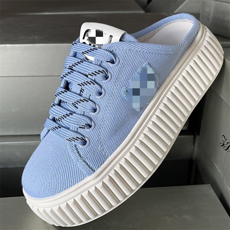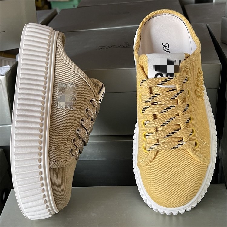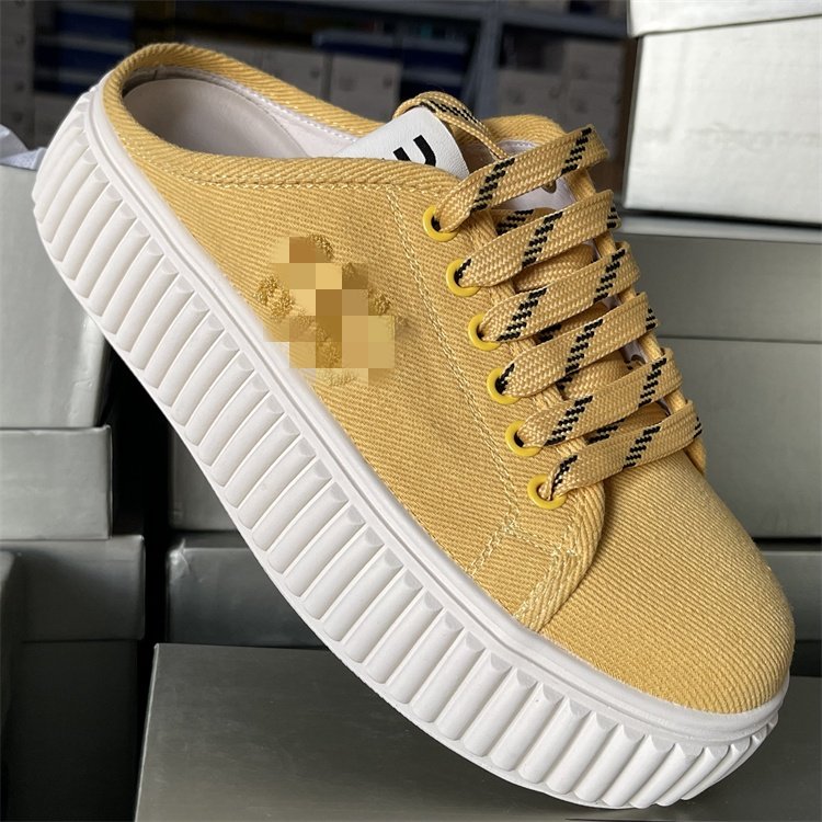 专柜正品松糕厚底帆布鞋女2025夏季新款真皮休闲一脚蹬包头半拖鞋