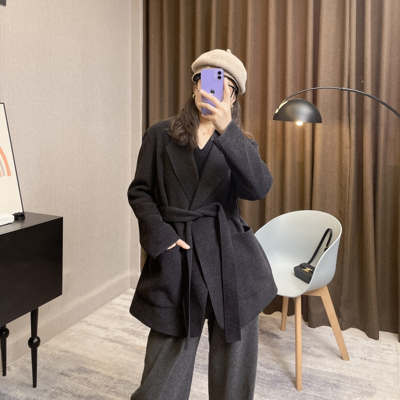 【专柜正版】高端双面羊毛羊绒毛呢大衣双排扣毛呢外套时尚洋xz1